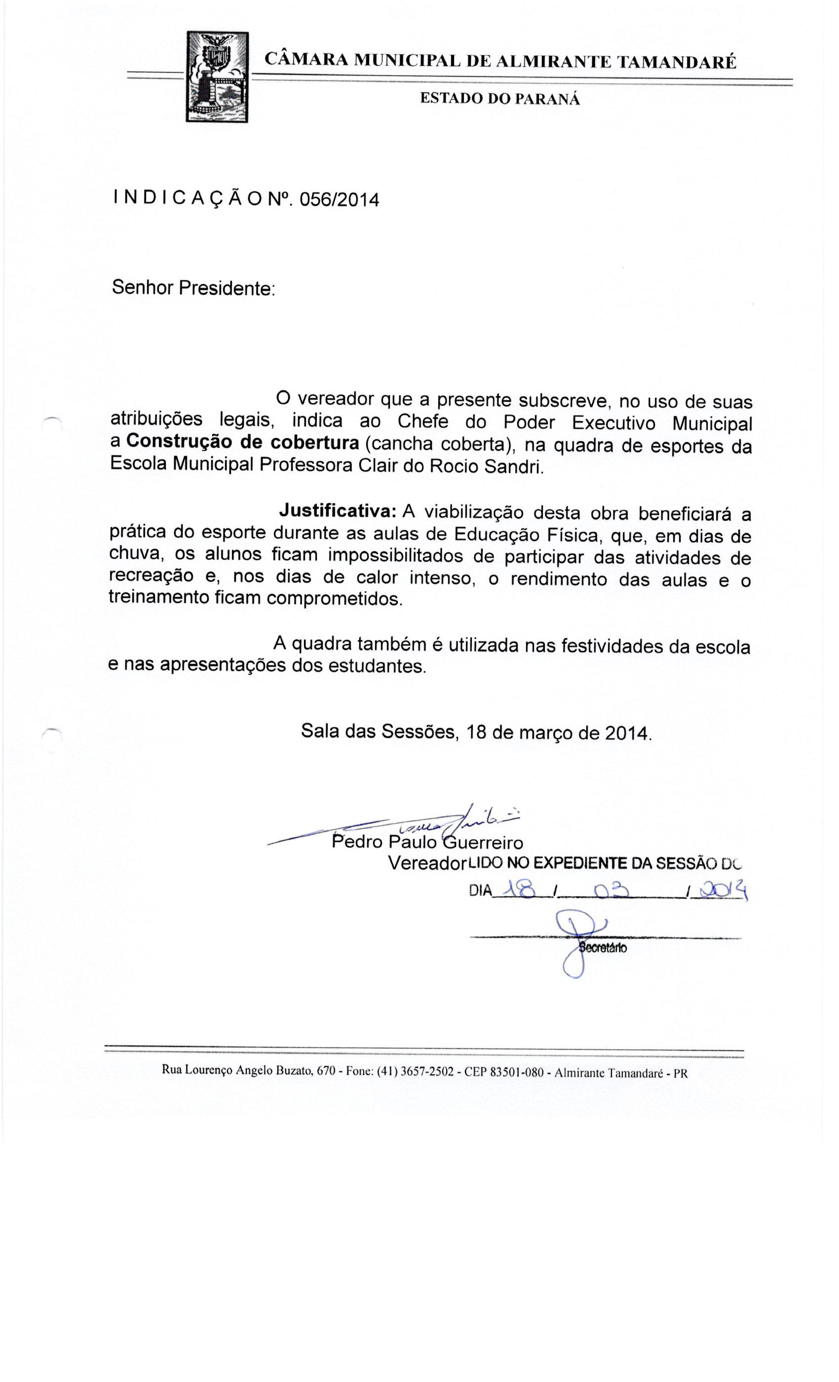 CONSTRUÇÃO DE COBERTURA - QUADRA DE ESPORTES NA ESCOLA MUNICIPAL PROF CLAIR DO ROCIO SANDRI.