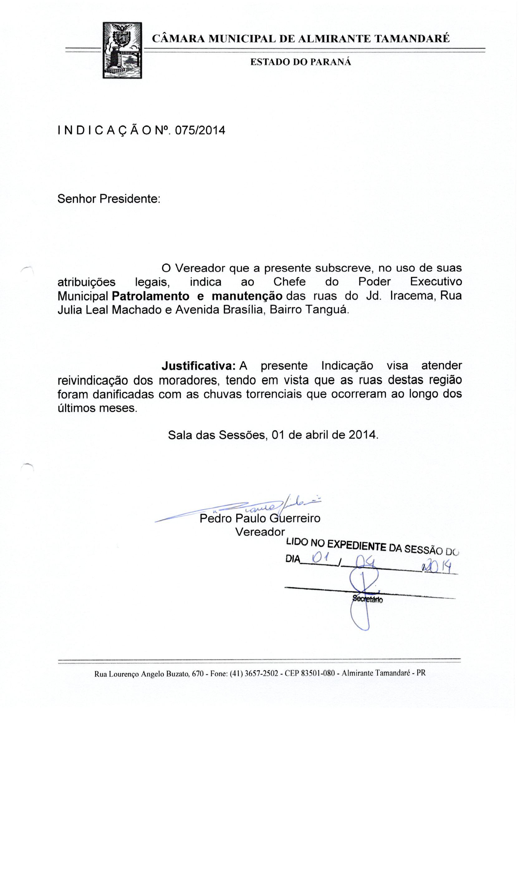 Indicação nº 75 de 2014