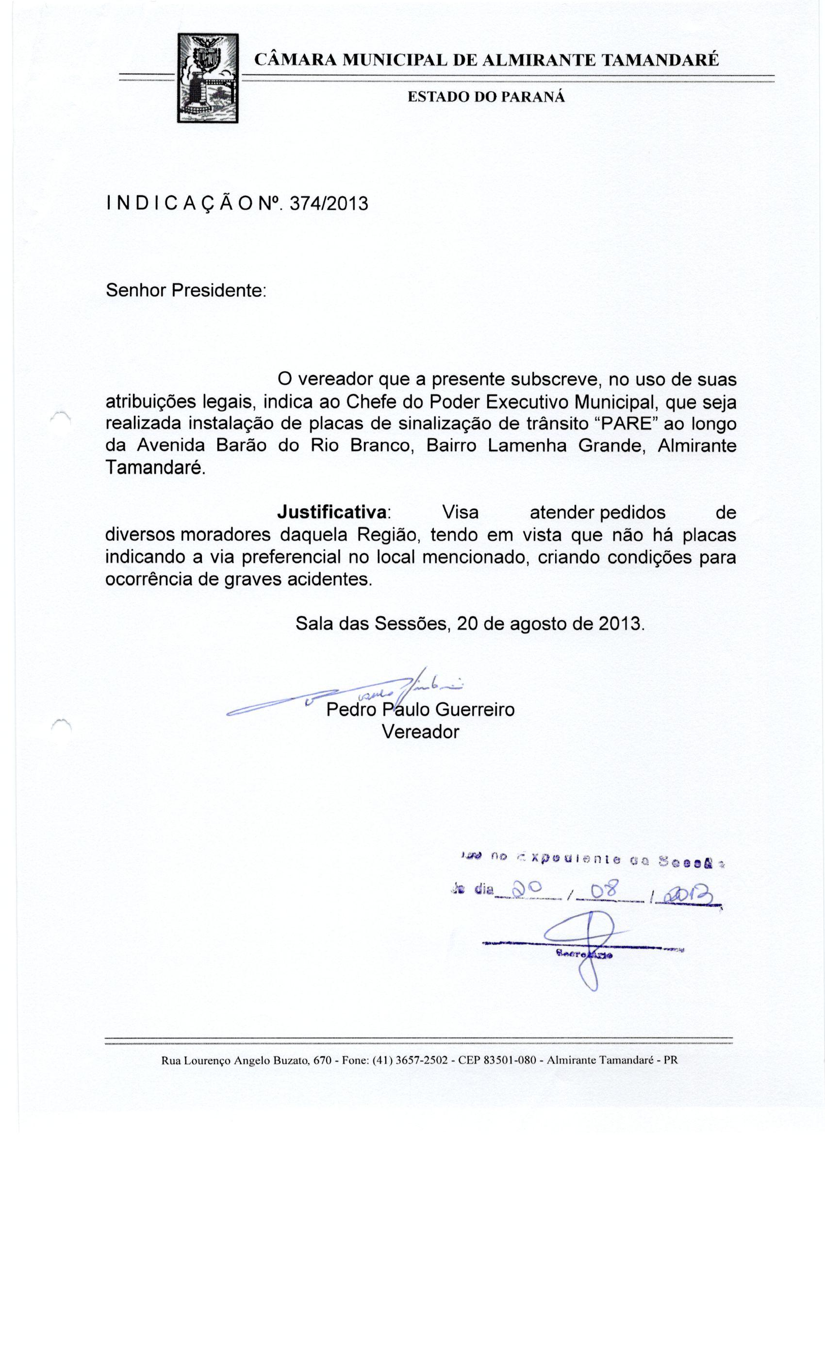 INSTALAÇÃO DE PLACAS DE SINALIZAÇÃO DE TRÂNSITO NA AV BARÃO DO RIO BRANCO, BAIRRO LAMENHA GRANDE