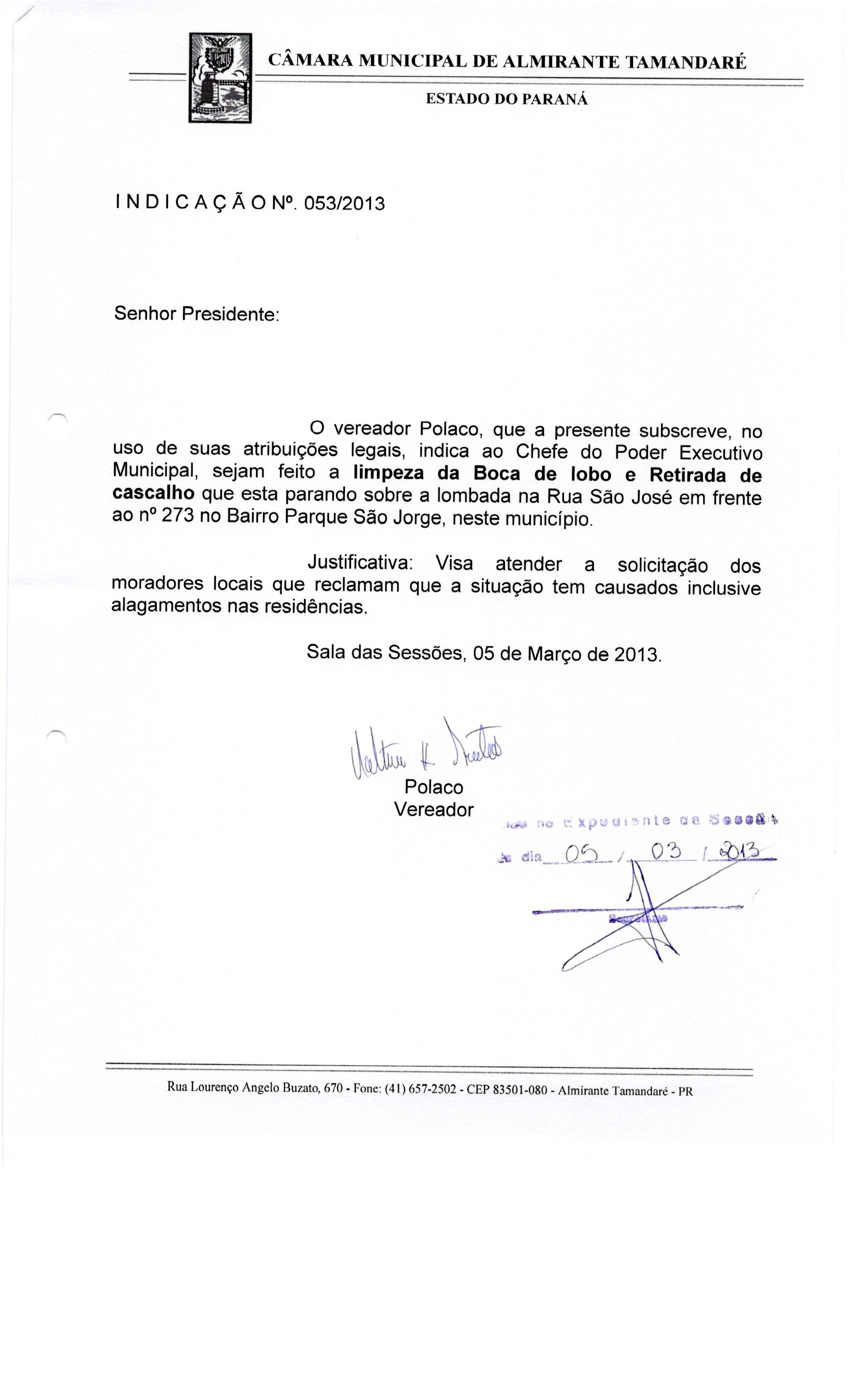 Indicação nº 53 de 2013