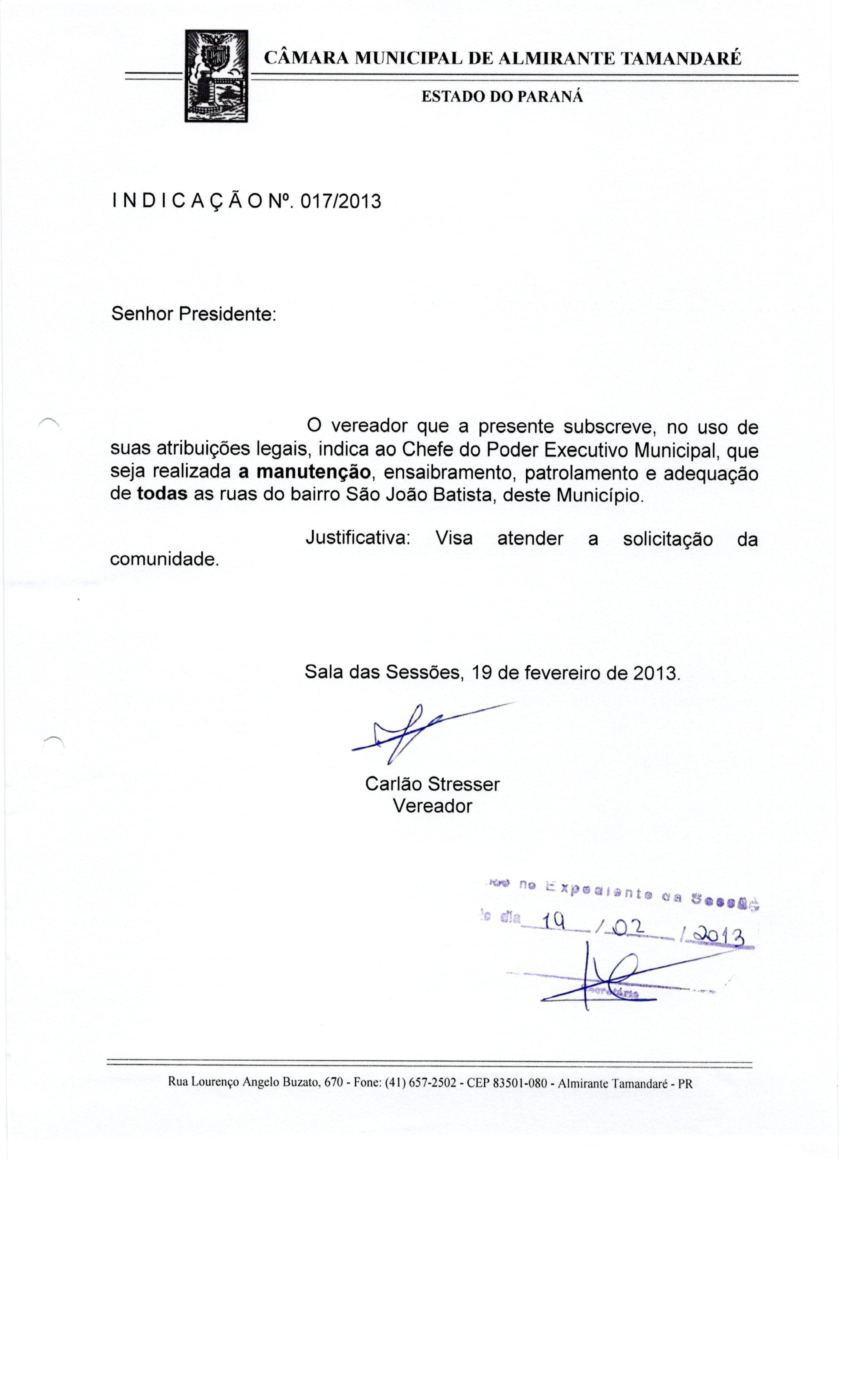 INDICAÇÃO PARA QUE SEJAM REALIZADOS MANUTENÇÃO, PATROLAMENTO, ENSAIBRAMENTO E ADEQUAÇÃO DE TODAS AS RUAS DO BAIRRO SÃO JOÃO BATISTA