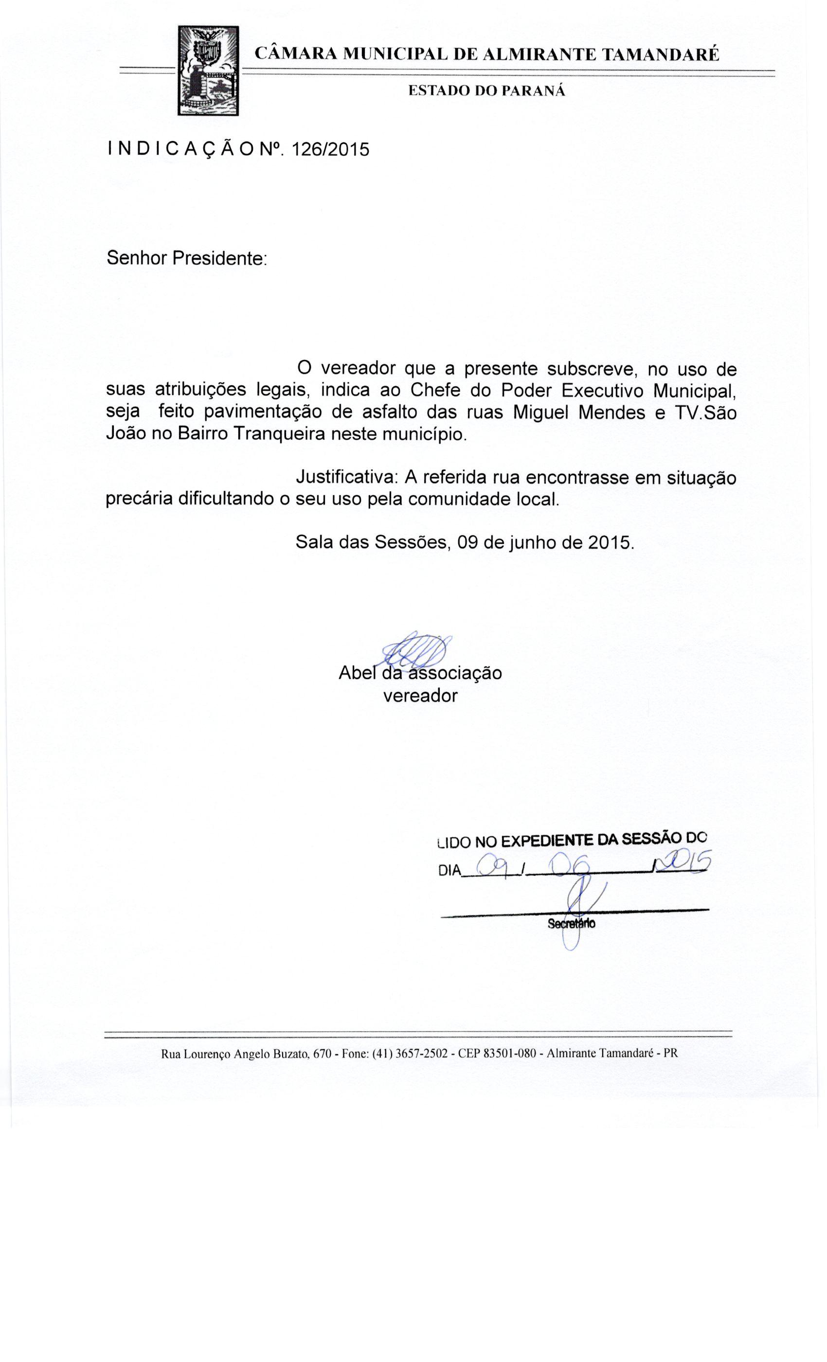 INDICA A PAVIMENTAÇÃO DE ASFALTO DAS RUAS MIGUEL MENDES E TV.SÃO JOÃO NO BAIRRO TRANQUEIRA.