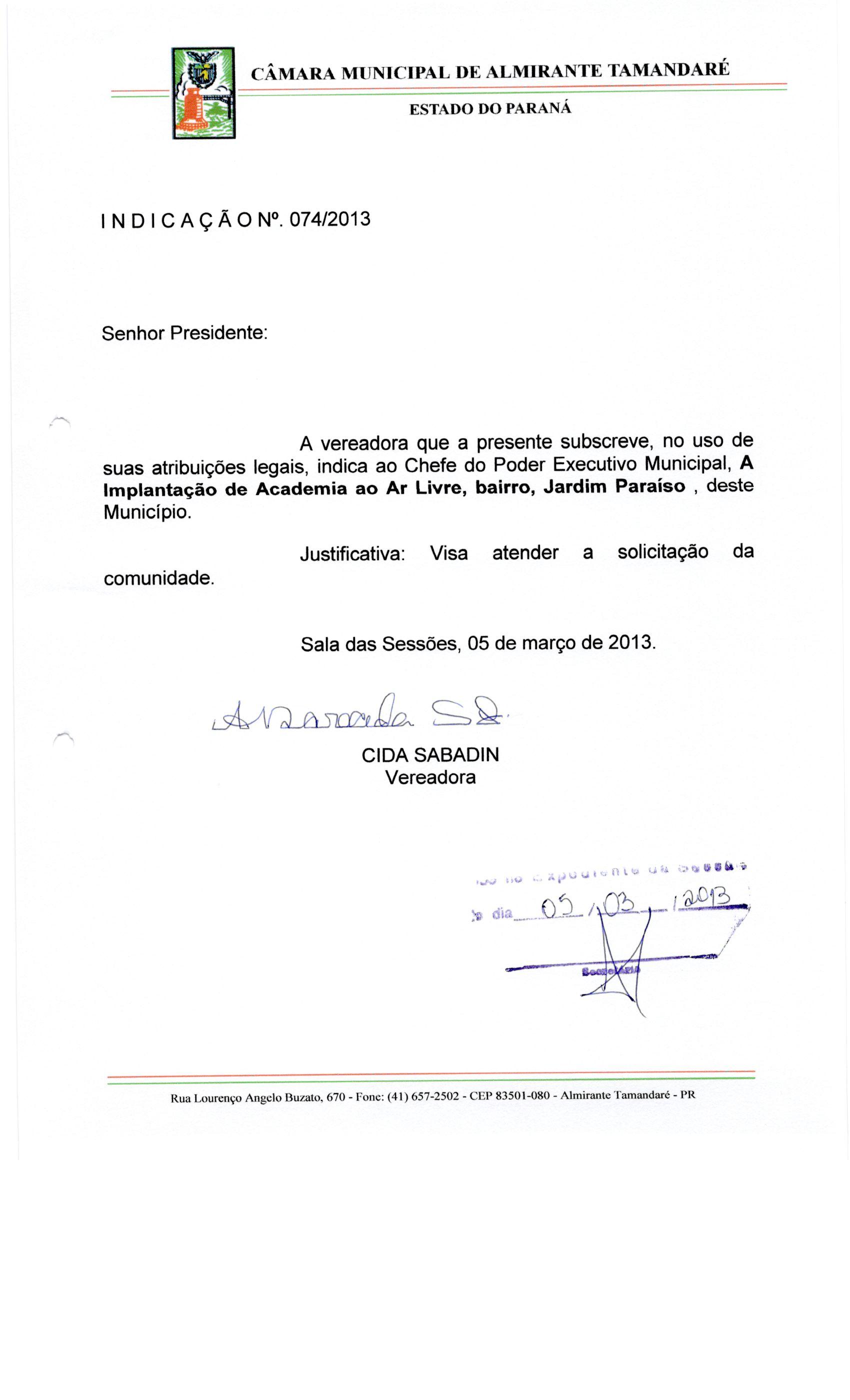 Indicação nº 74 de 2013