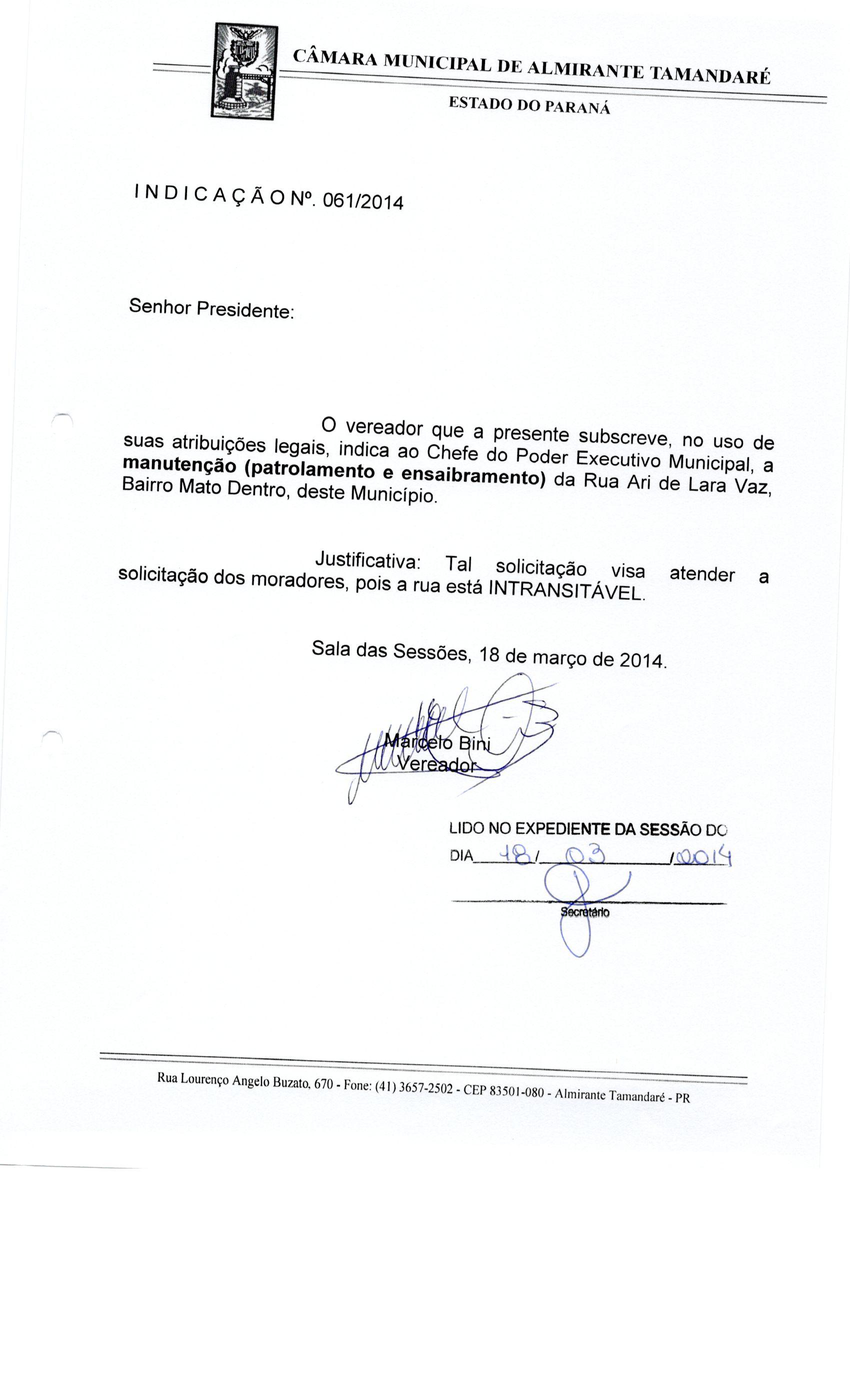 PATROLAMENTO ENSAIBRAMENTO DA RUA ARI DE LARA VAZ,BAIRRO MATO DENTRO.