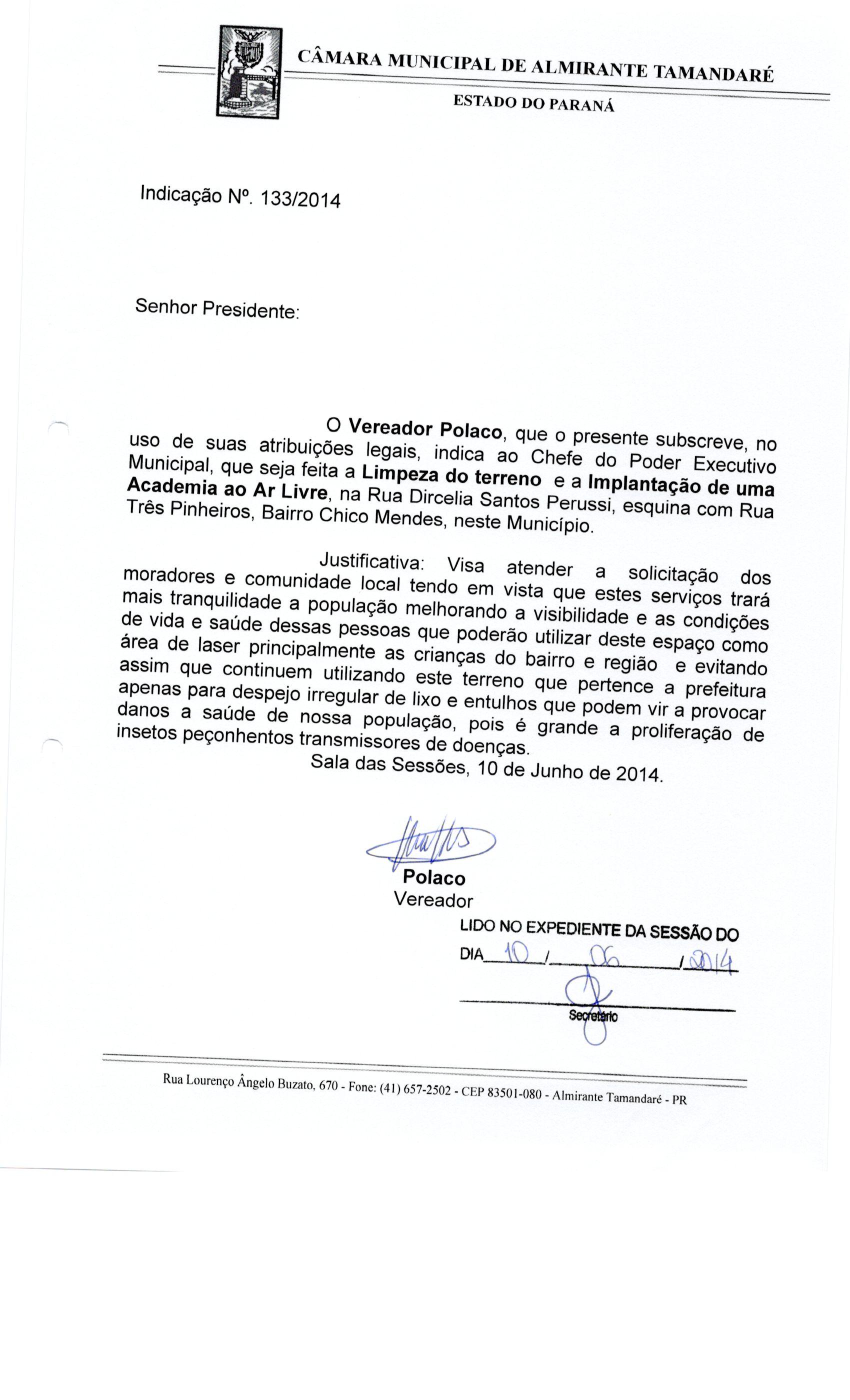 QUE SEJA FITA A LIMPEZA DE UM TERRENO NA RUA DIRCELIA SANTOS PERUSSI ESQUINA COM TRÊS PINHEIROS.