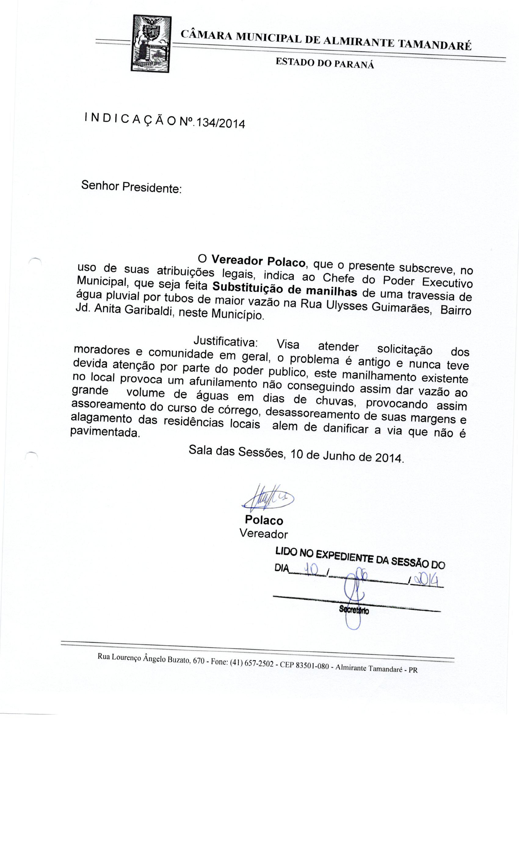 QUE SEJA FEITA A SUBSTITUIÇÃO DE MANILHAS NA RUA ULISSES GUIMARÃES BAIRRO ANITA GARIBALDE.