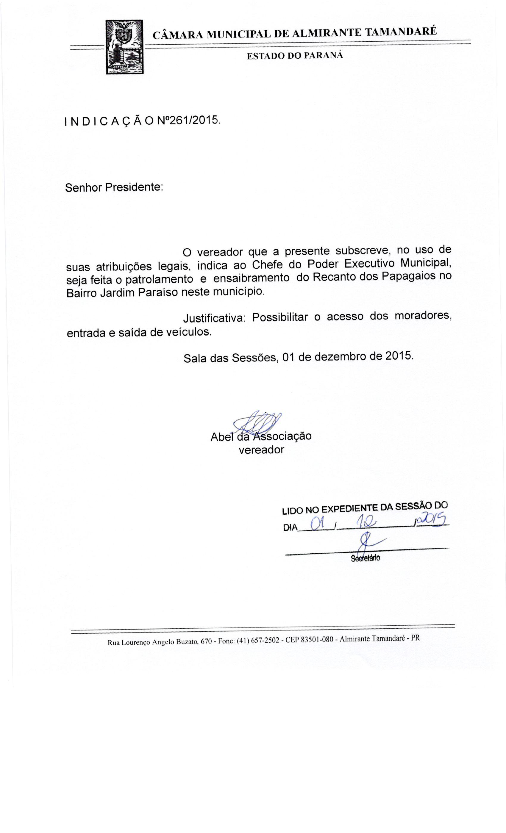 INDICAÇÃO PATROLAMENTO E ENSAIBRAMENTO DO RECANTO DOS PAPAGAIOS,BAIRRO JARDIM PARAÍSO.