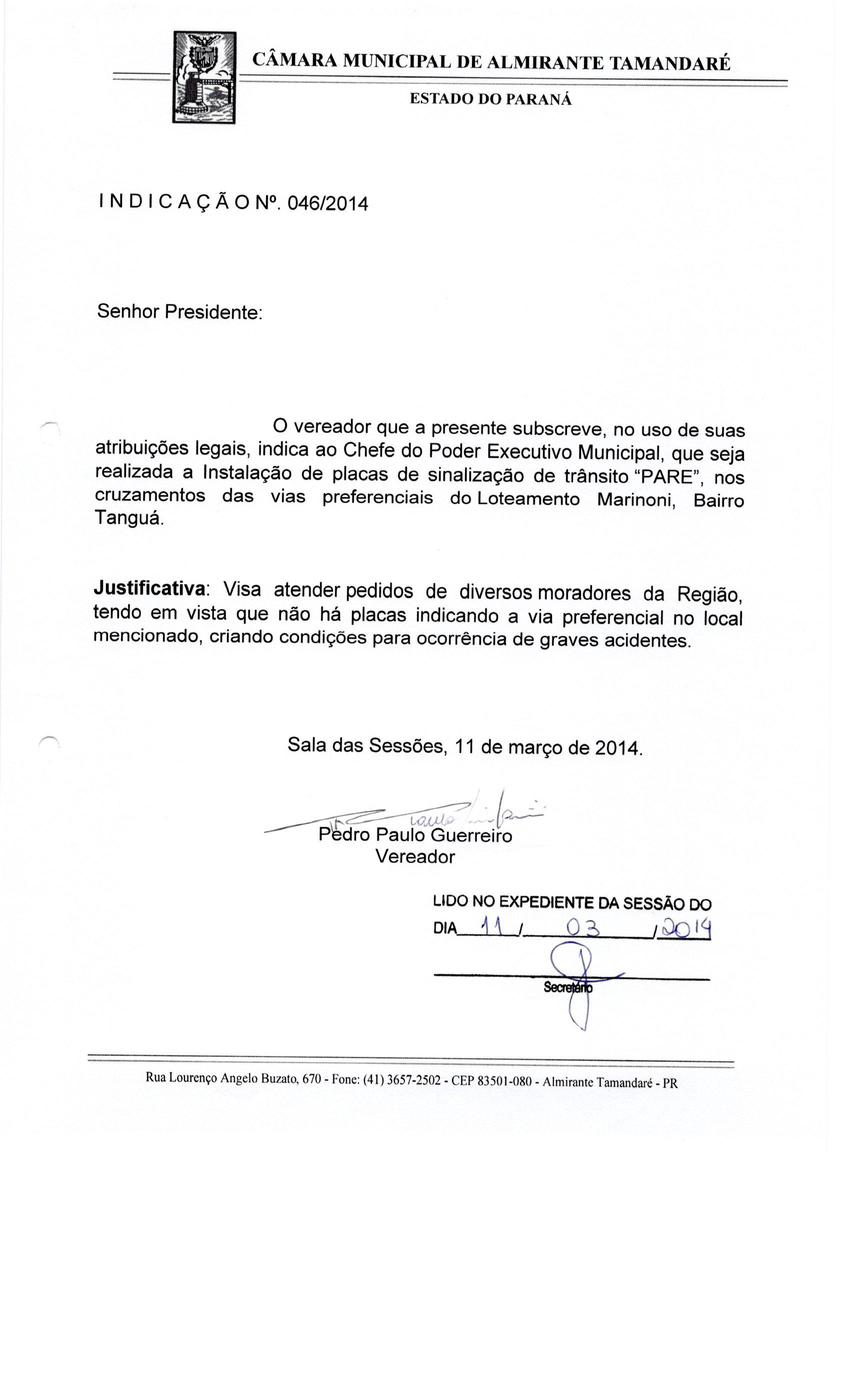 PLACAS DE SINALIZAÇÃO - NOS CRUZAMENTOS DO LOTEAMENTO MARINONI NO BAIRRO TANGUÁ.