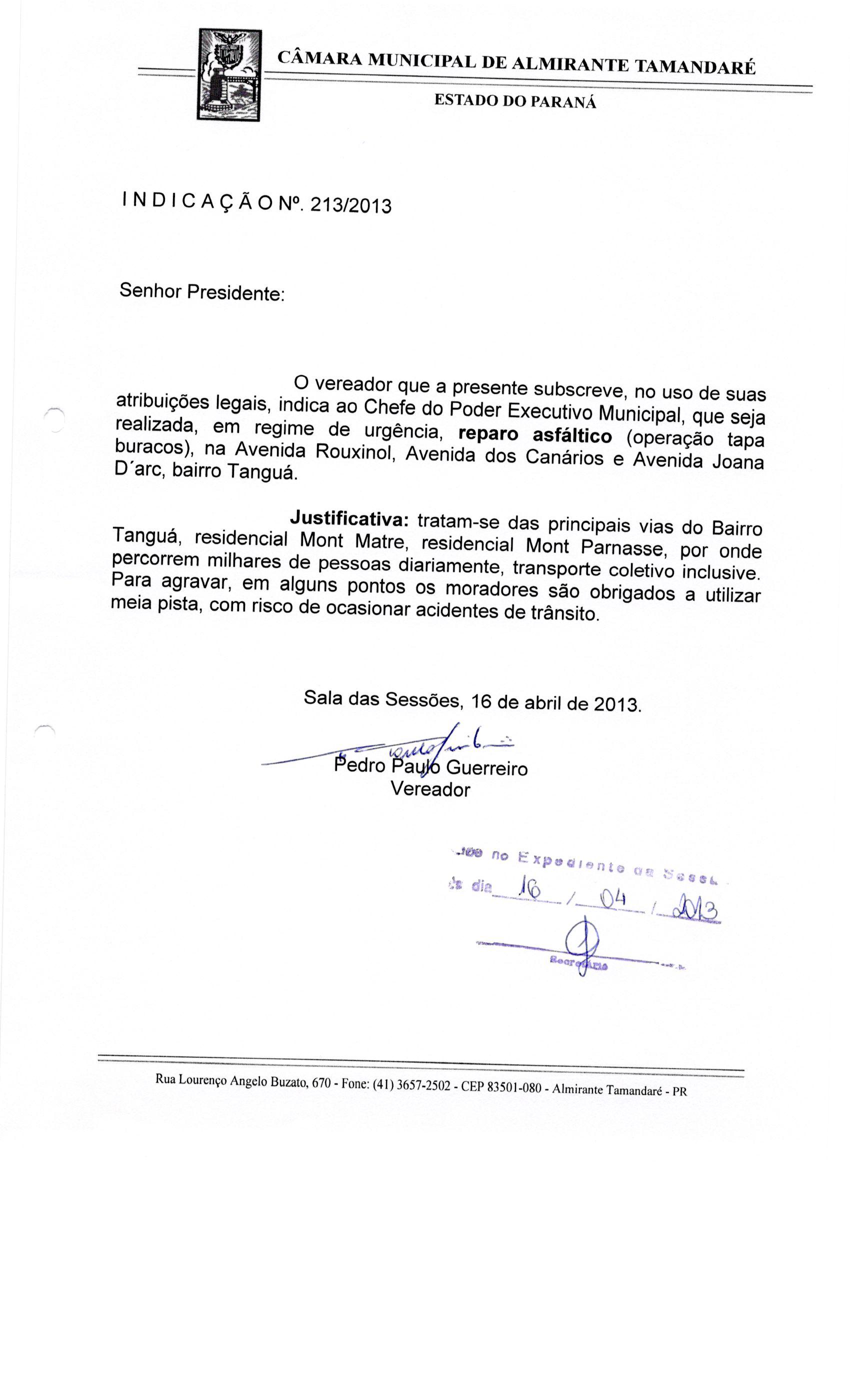 IND 213/2013 - Indicação