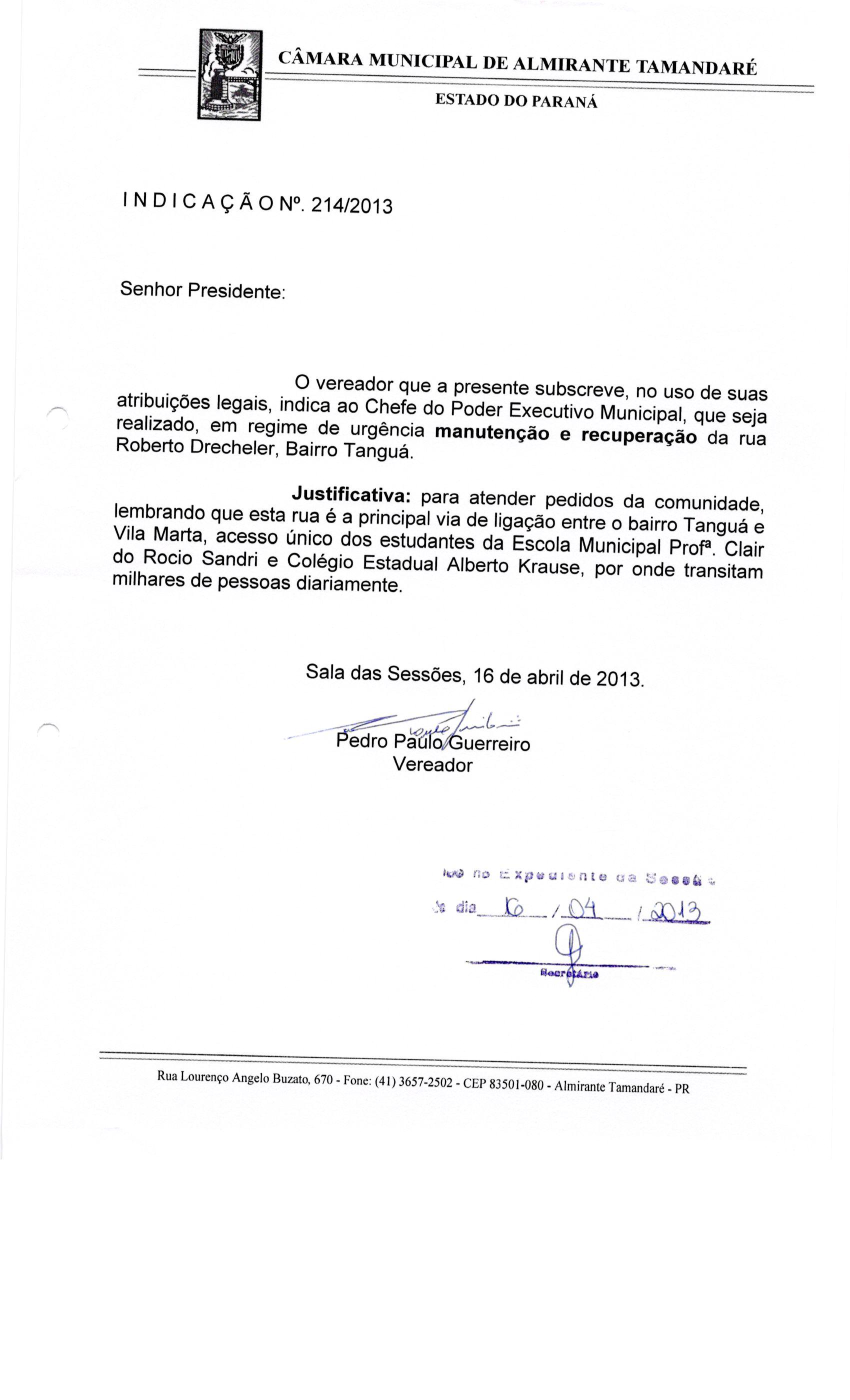 IND 214/2013 - Indicação