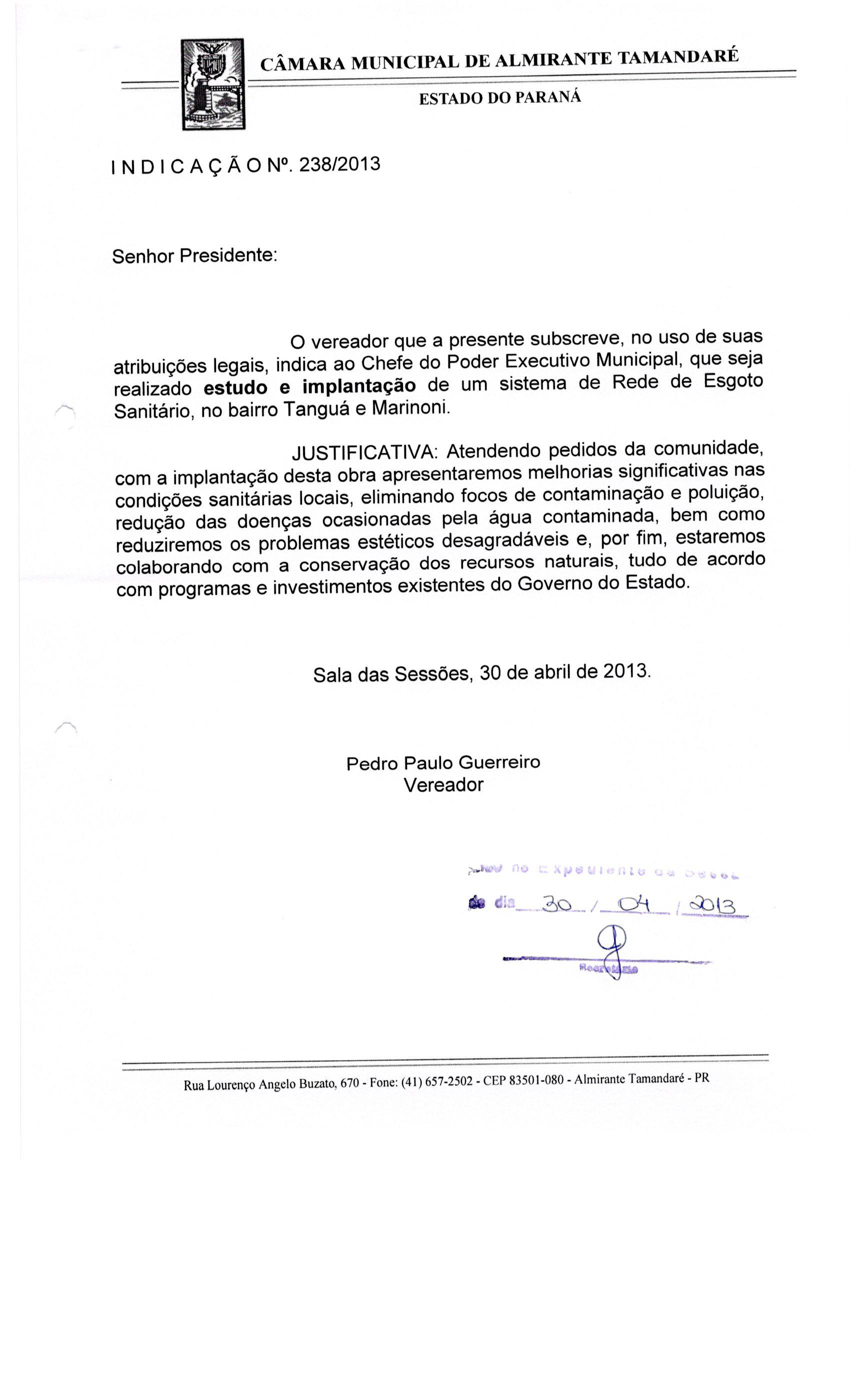 IND 238/2013 - Indicação