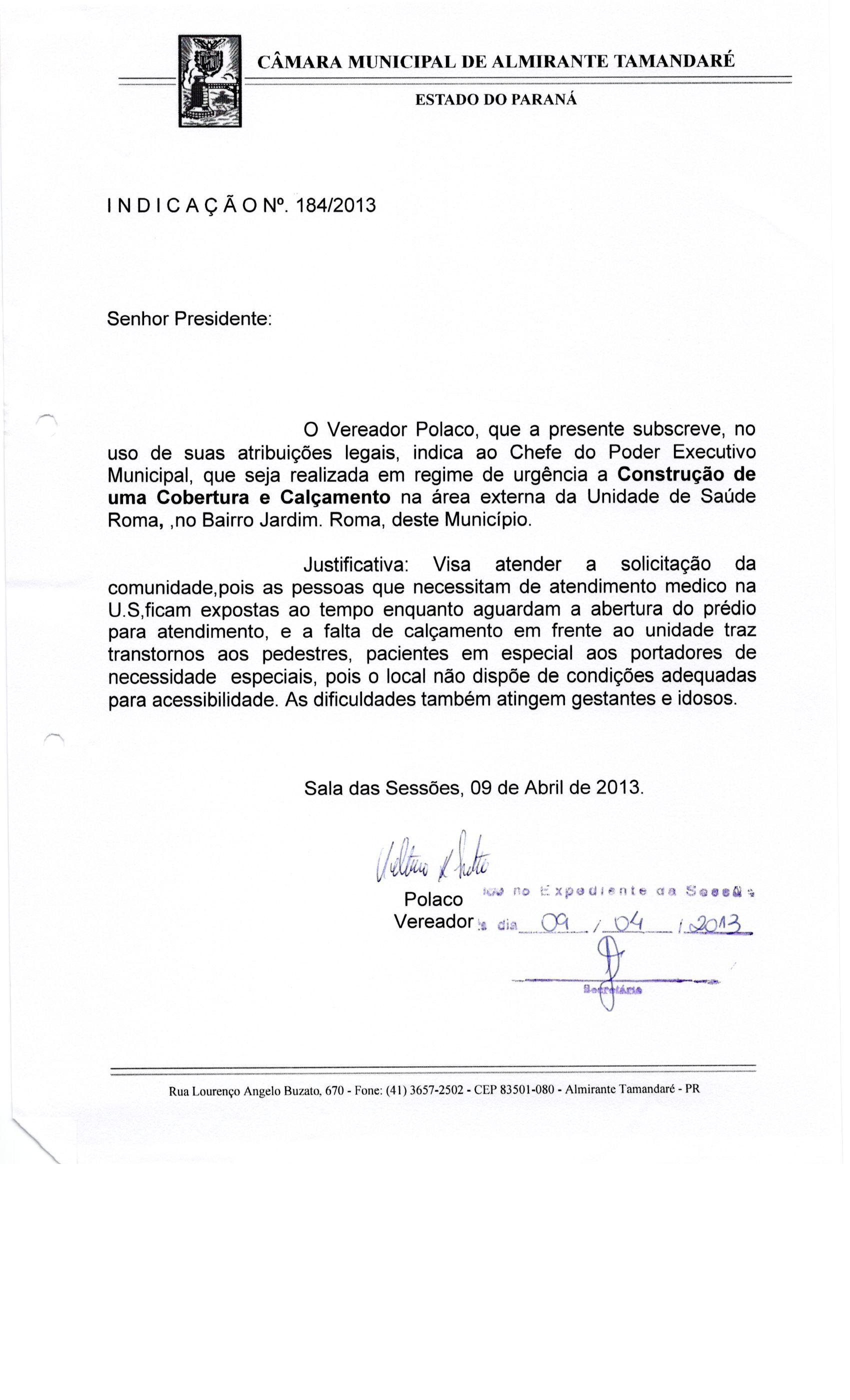 IND 184/2013 - Indicação