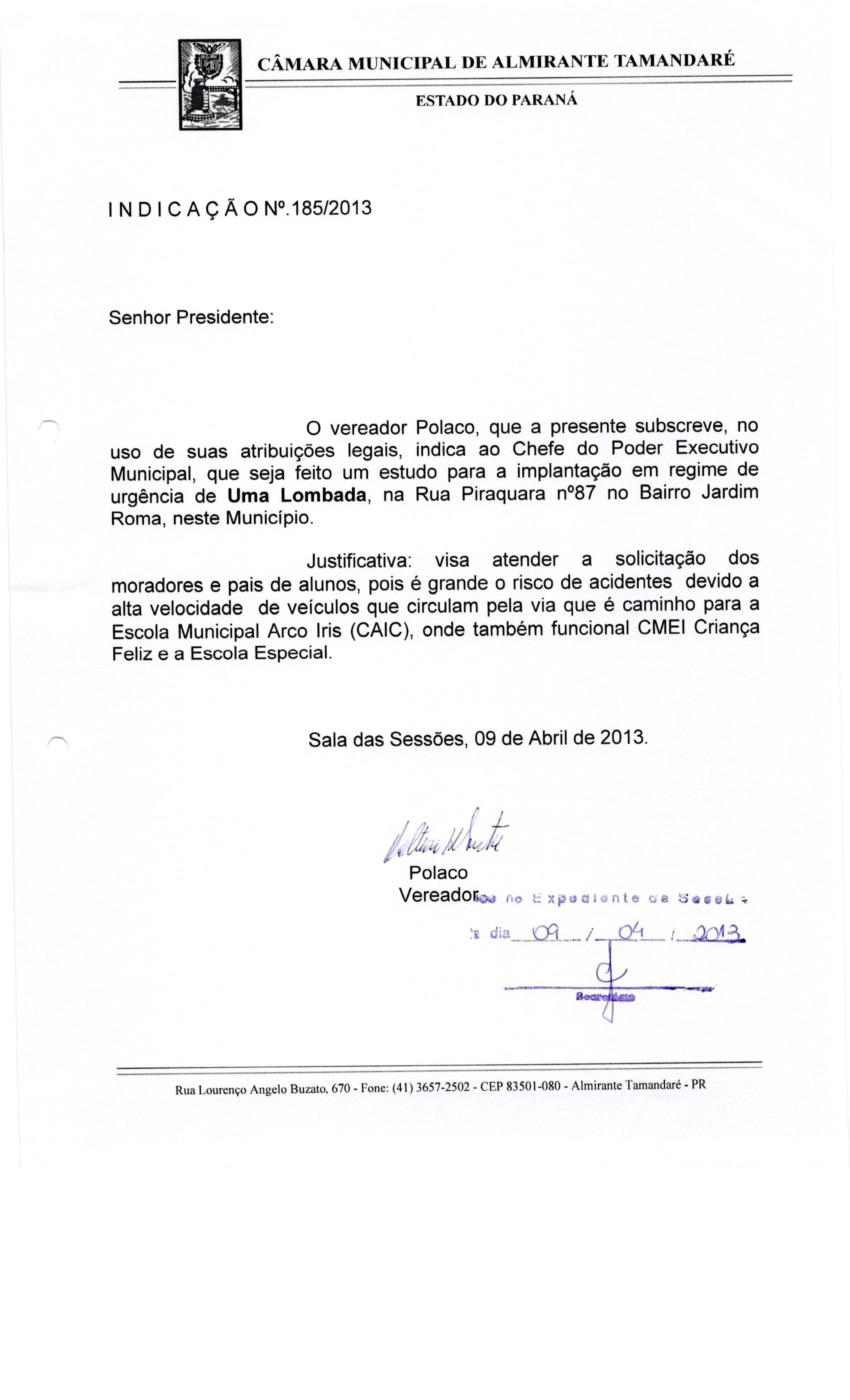 IND 185/2013 - Indicação