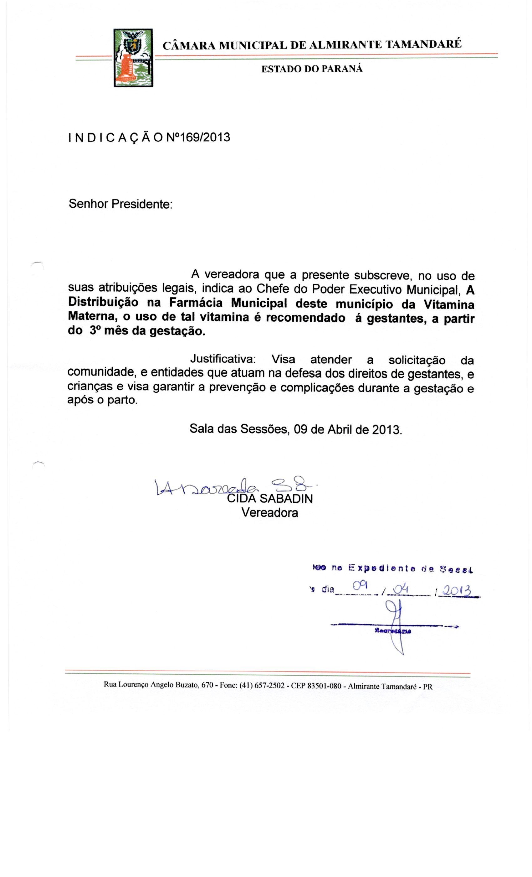 IND 169/2013 - Indicação
