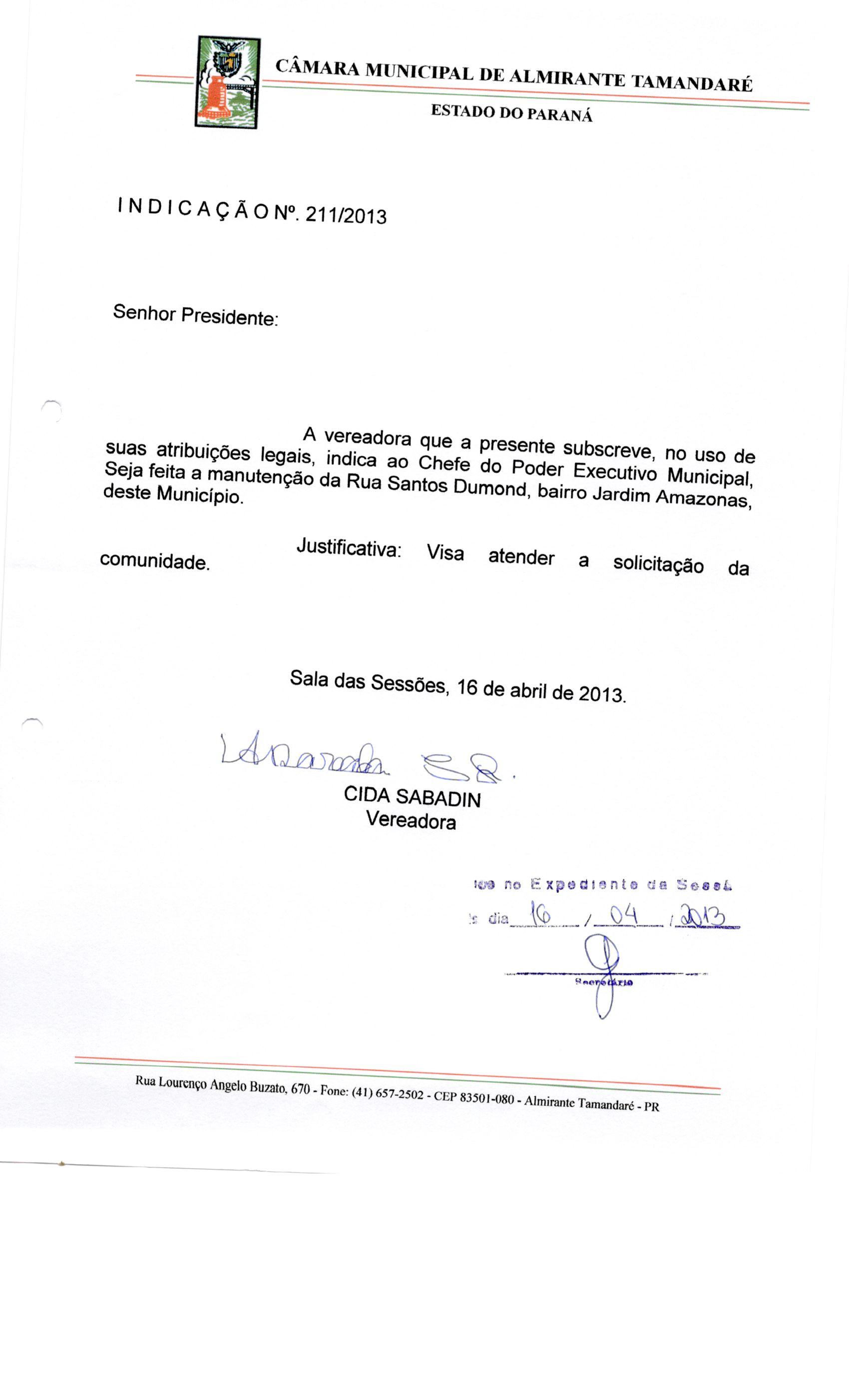 IND 211/2013 - Indicação