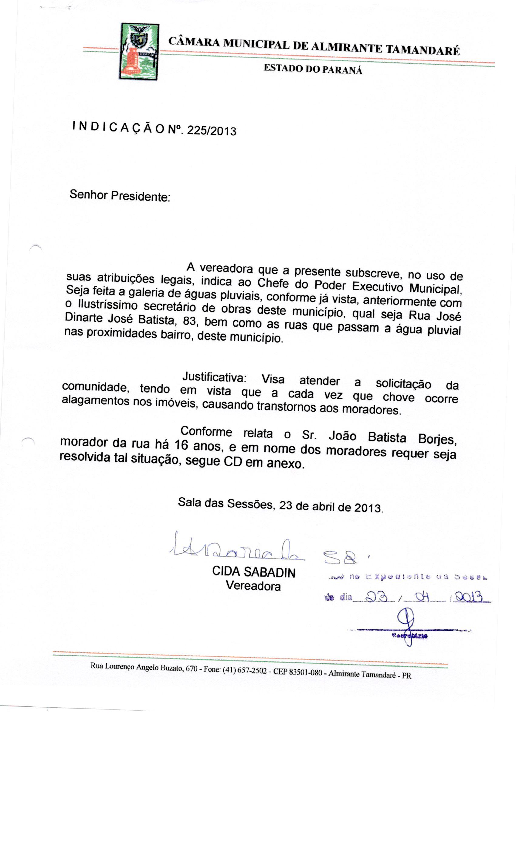 IND 225/2013 - Indicação