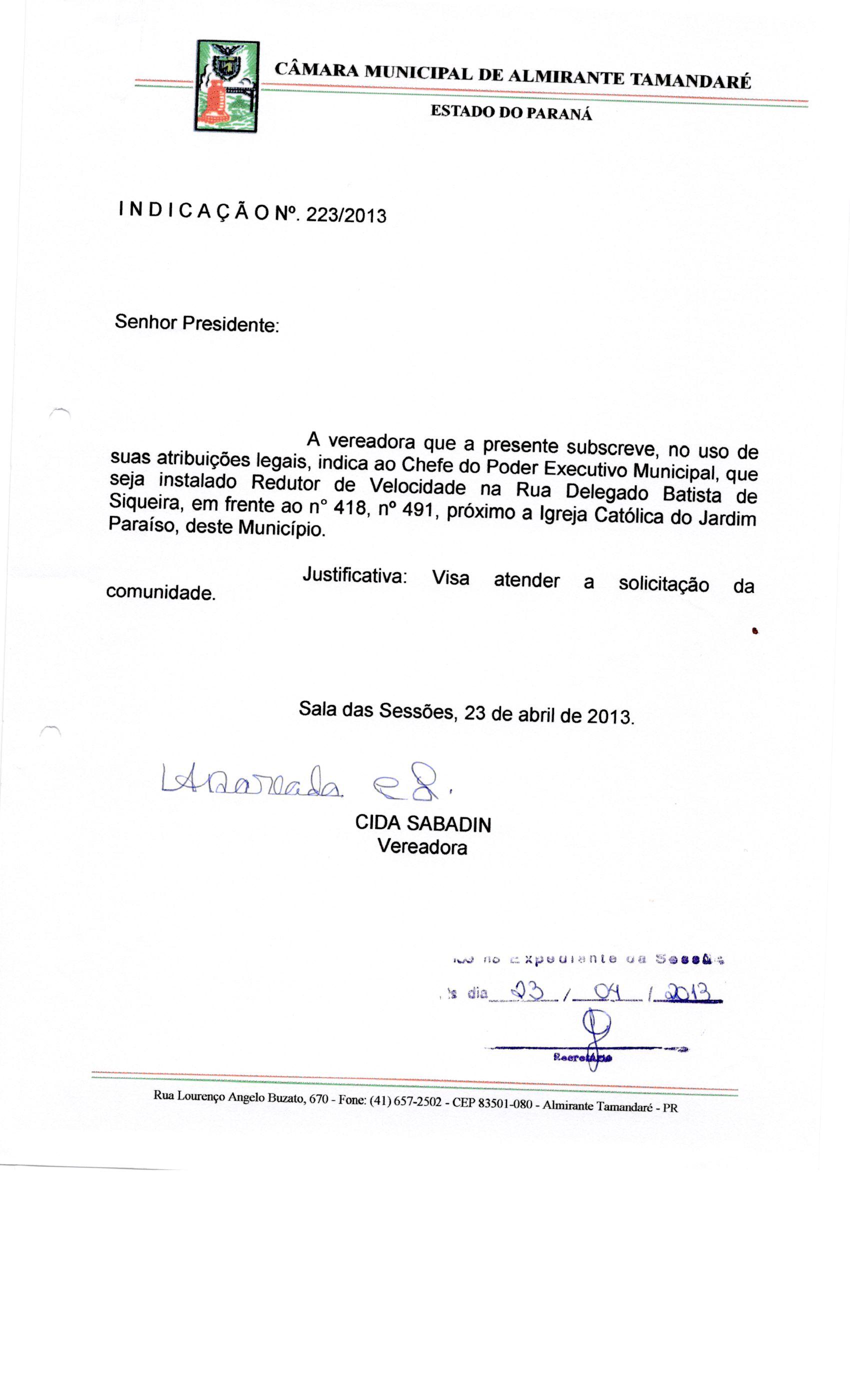 IND 223/2013 - Indicação