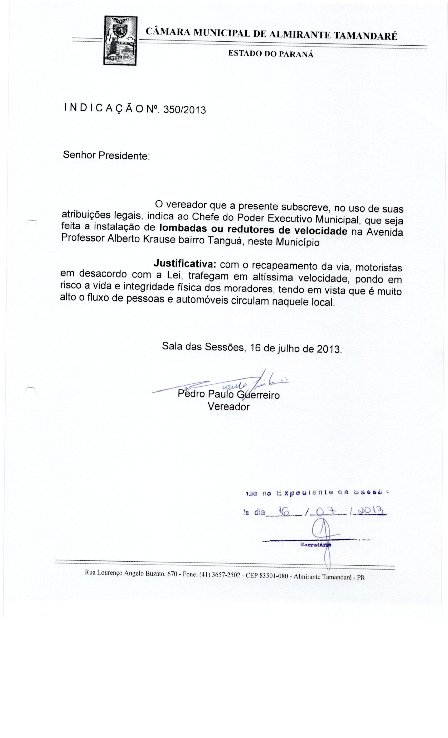 Ementa: INSTALAÇÃO DE LOMBADAS OU REDUTORES DE VELOCIDADE NA AV PROF ALBERTO KRAUSE NO BAIRRO TANGUÁ