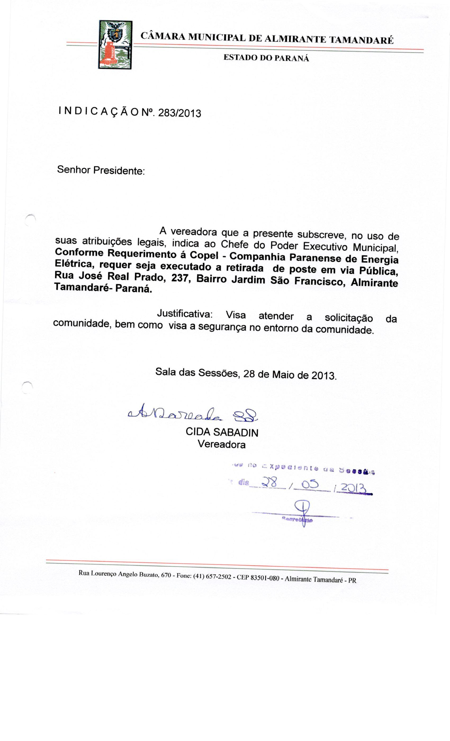 Ementa: SEJA EXECUTADO A RETIRADA DO POSTE EM VIA PUBLICA NA RUA JOSÉ REAL PRADO JD SÃO FRANCISCO.