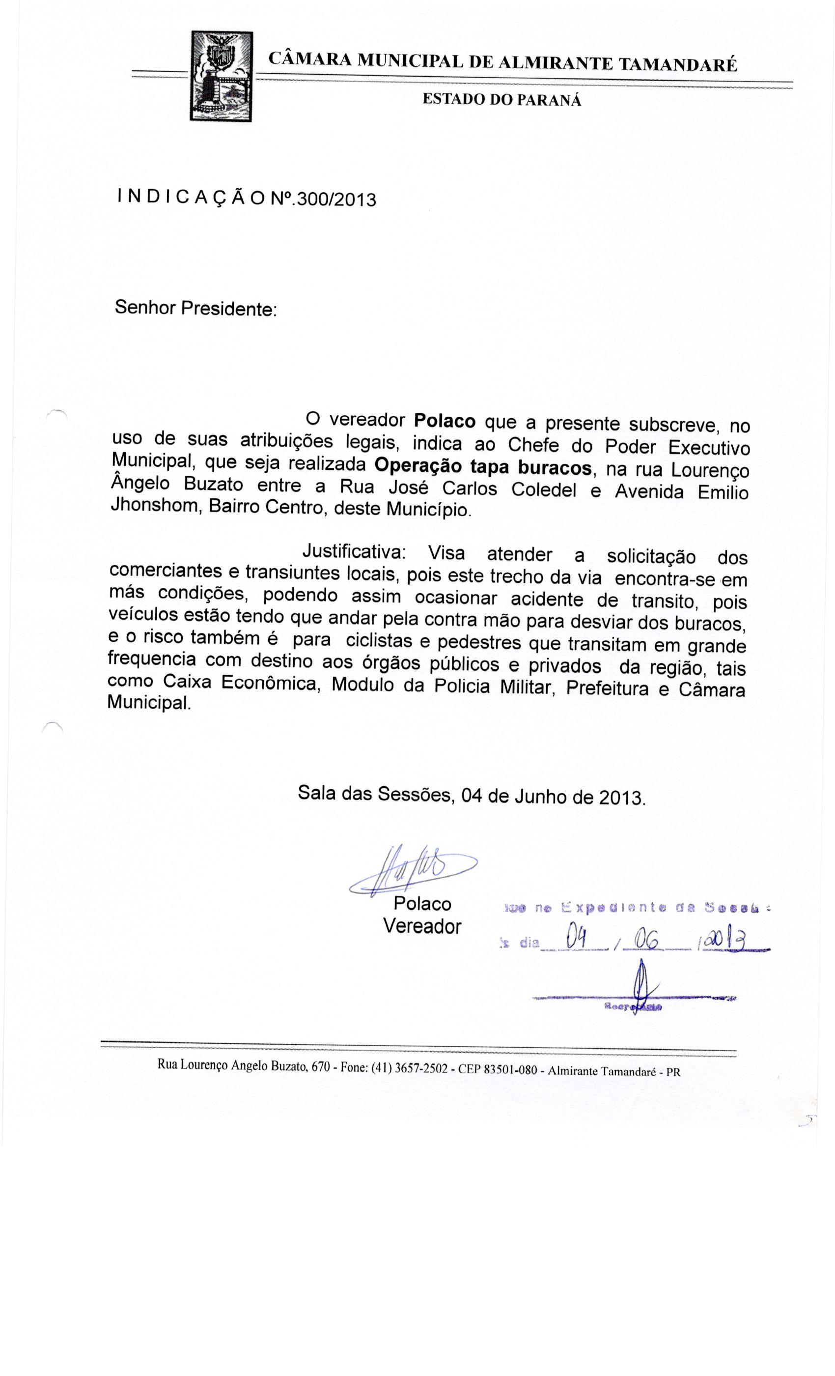 Ementa: QUE SEJA FEITA OPERAÇÃO TAPA BURACOS NA RUA LOURENÇO ANGELO BUSATO.