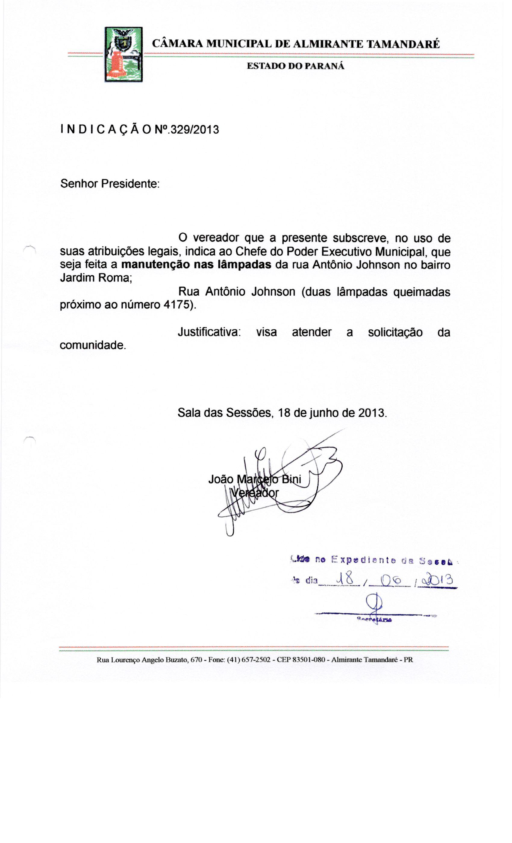 Ementa: QUE SEJA FEITA A TROCA DE LAMPADAS NA RUA ANTONIO JOHNSON NAS PROXIMIDADES DO NUMERO 4175,BAIRRO JARDIM ROMA.