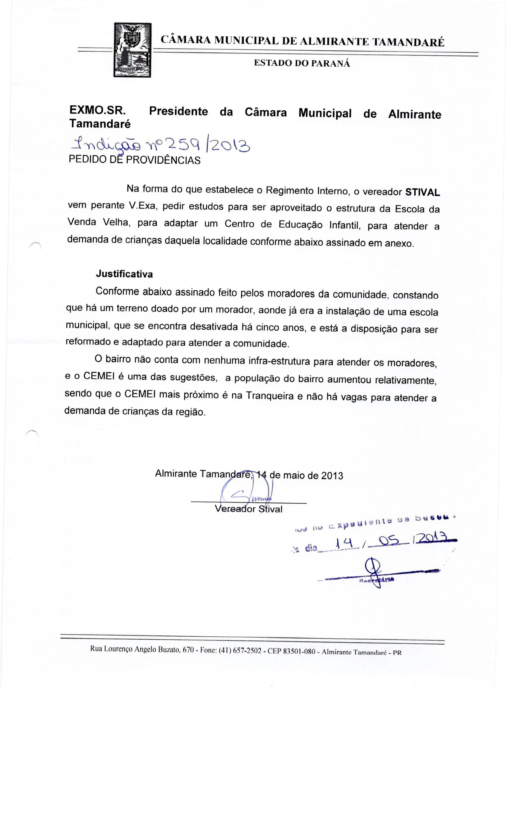 Ementa: ESTUDO PARA IMPLANTAÇÃO DE UMA NOVA ESCOLA NO BAIRRO TANGUÁ PRÓXIMO DA COLÔNIA GABRIELA