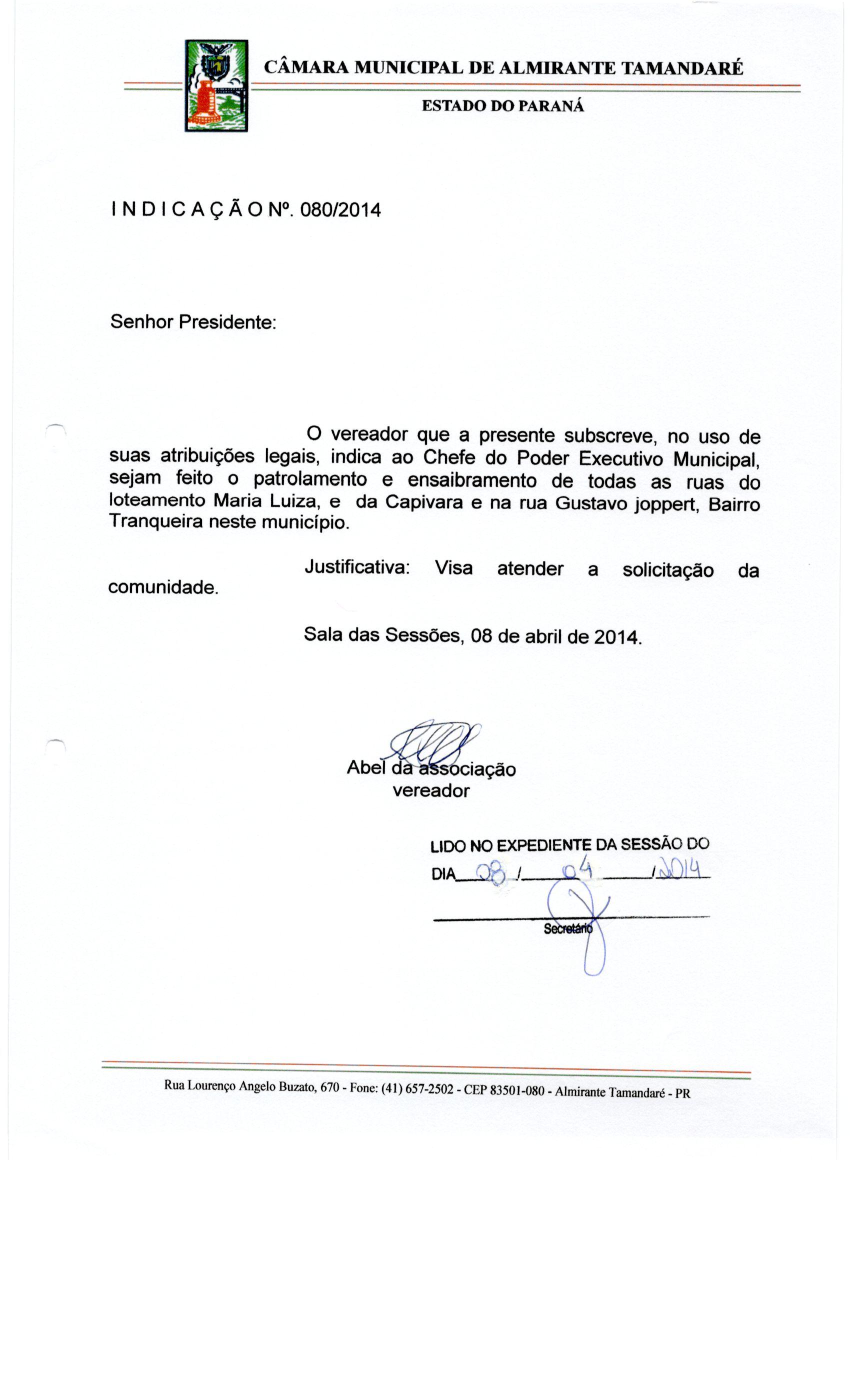 IND 80/2014 - Indicação