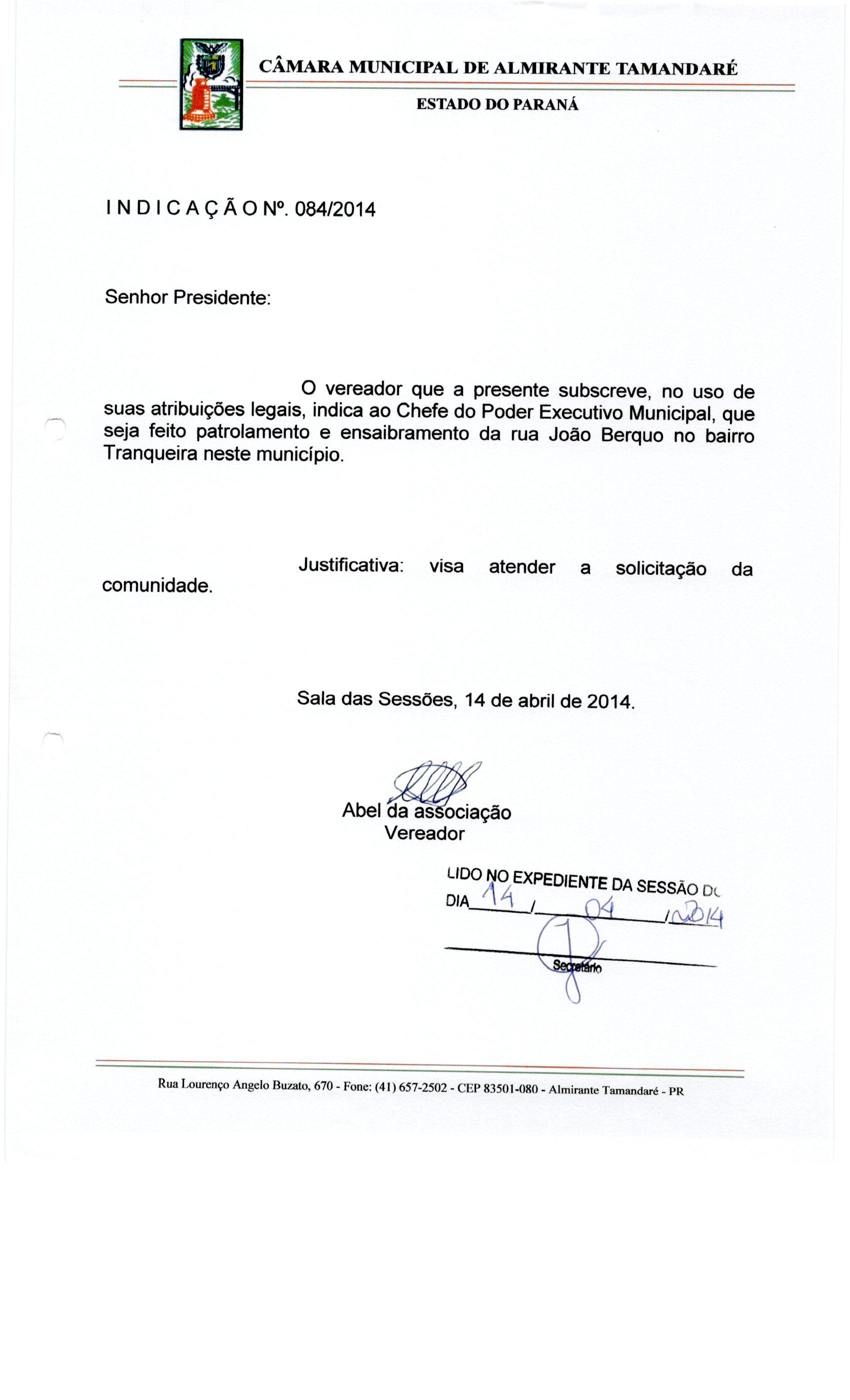 IND 84/2014 - Indicação