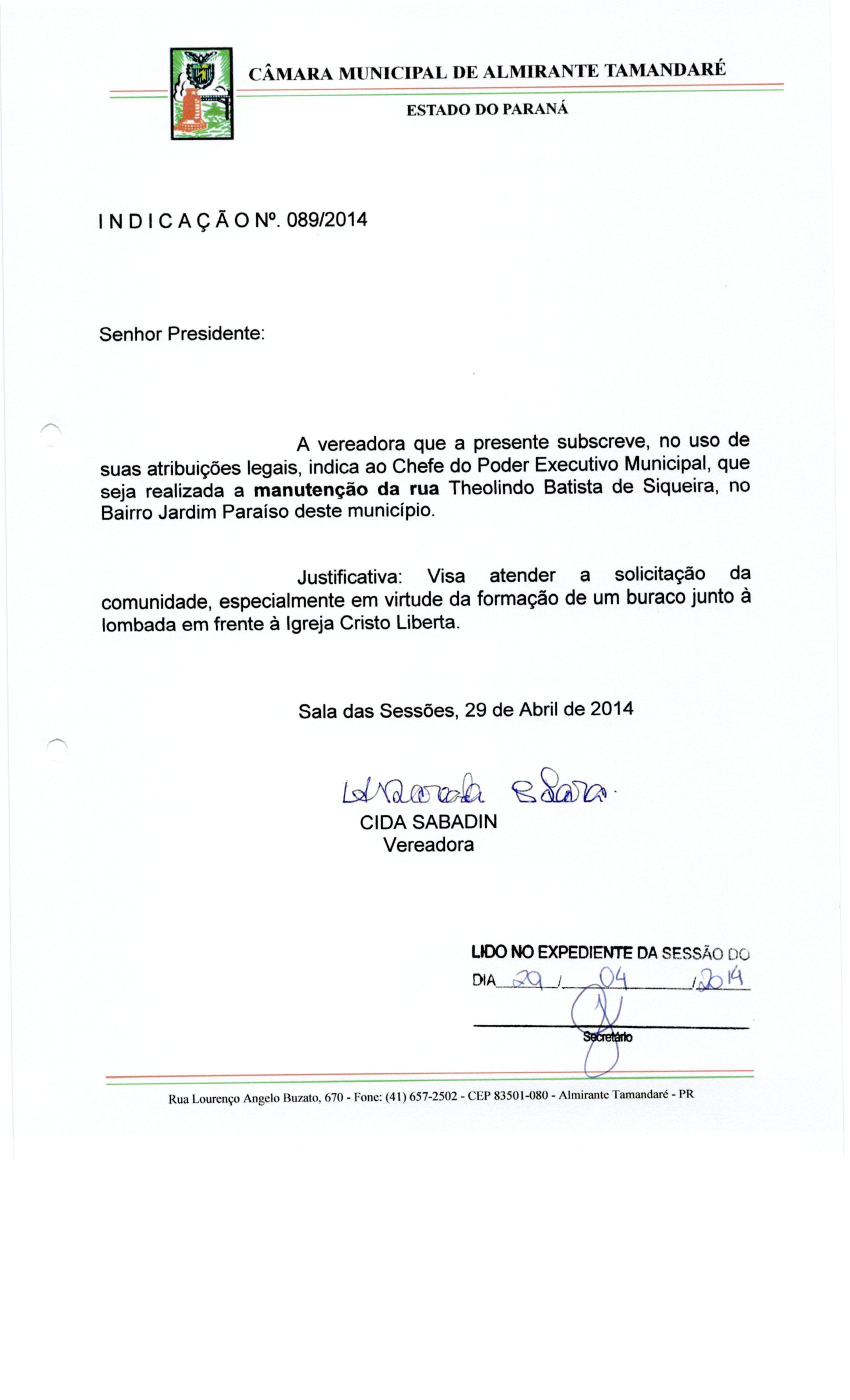 IND 89/2014 - Indicação