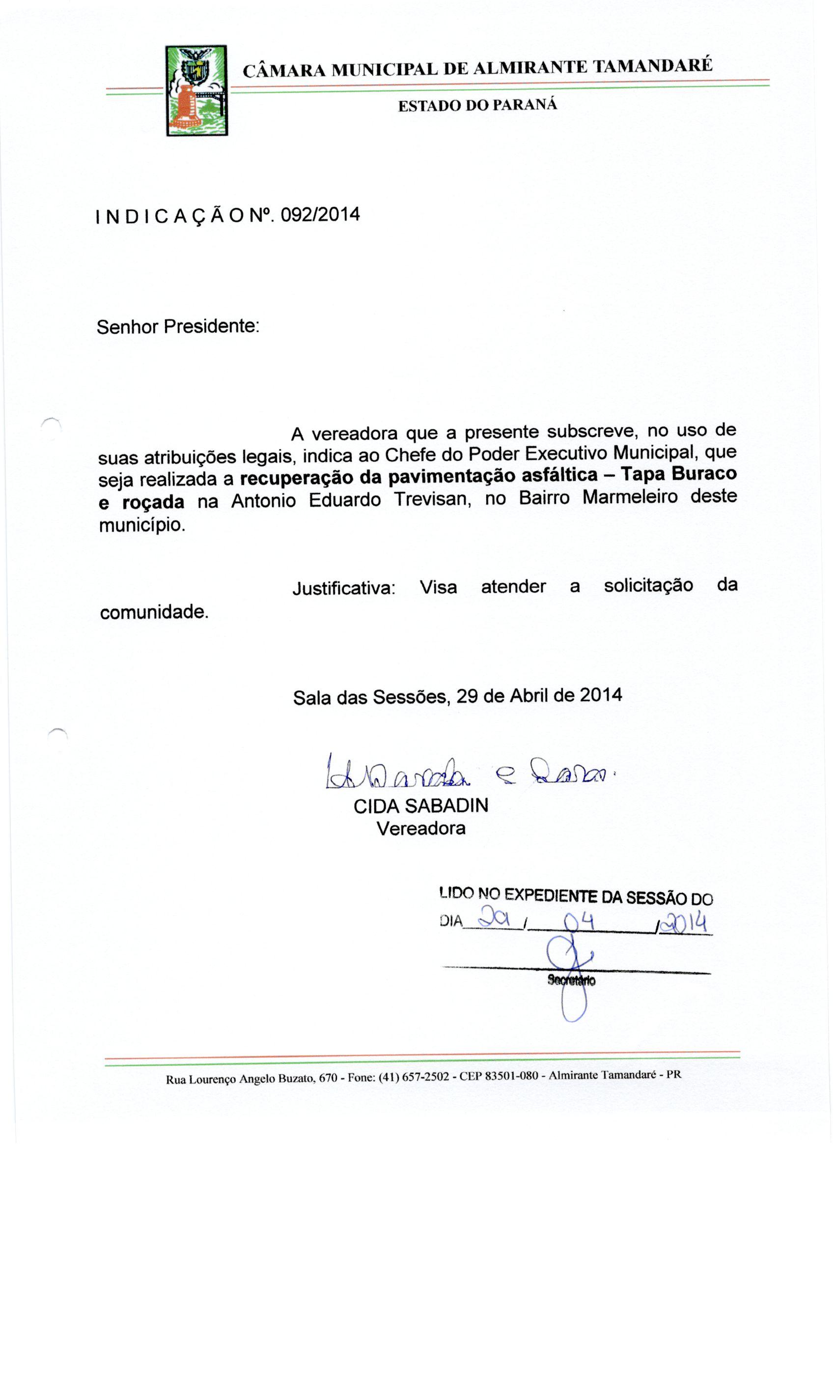 IND 92/2014 - Indicação