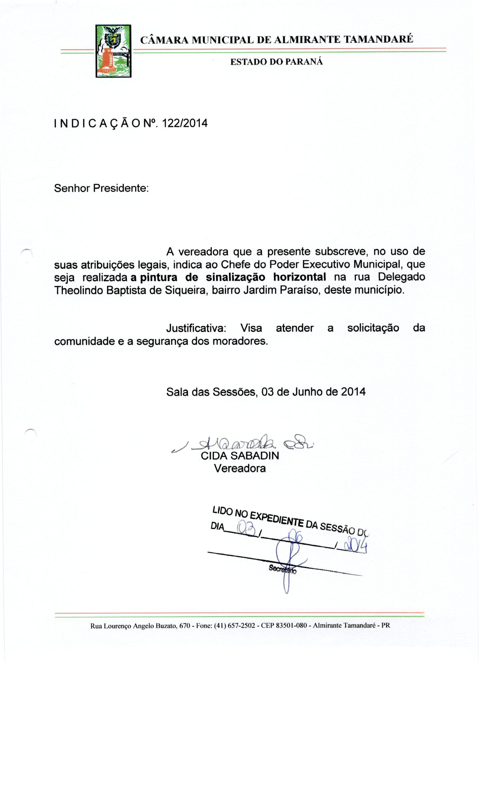 IND 122/2014 - Indicação