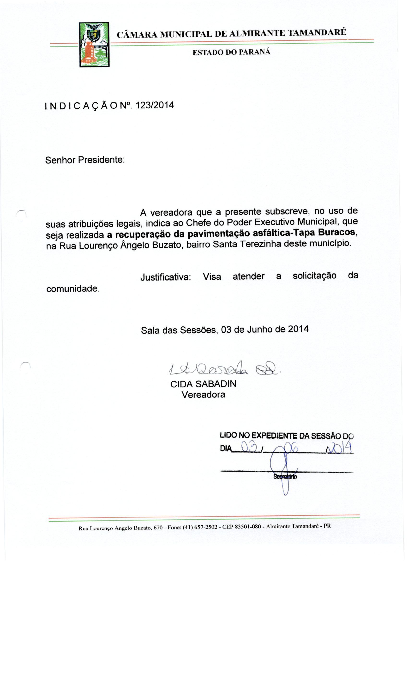 IND 123/2014 - Indicação