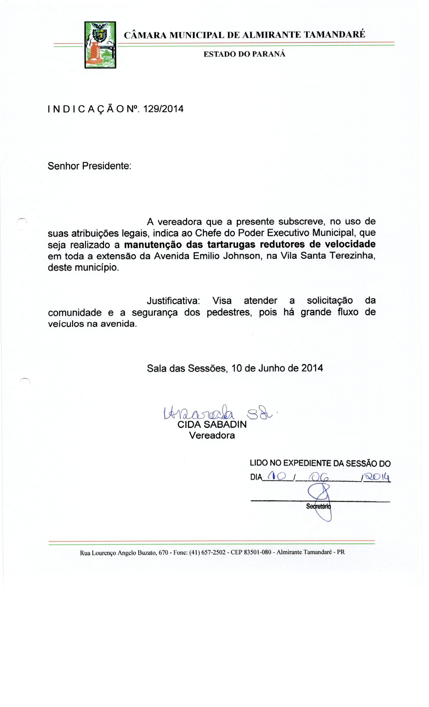 IND 129/2014 - Indicação