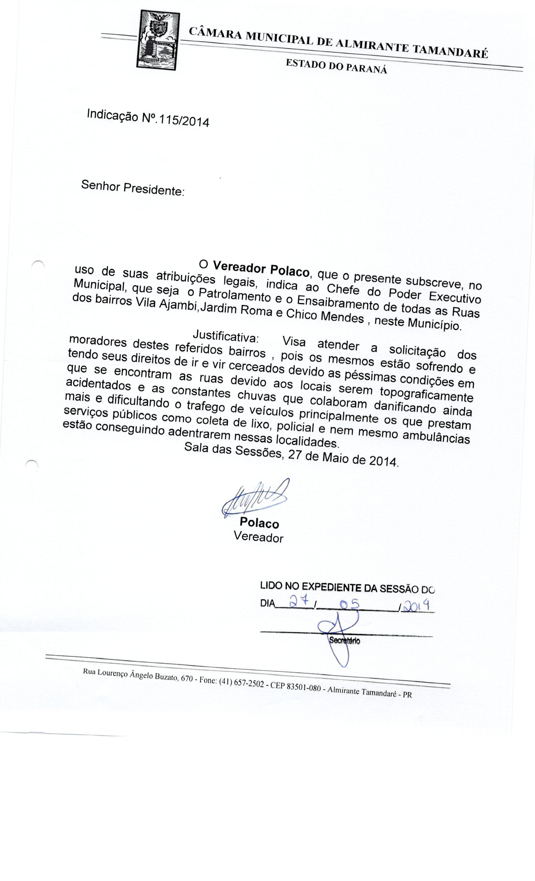 IND 115/2014 - Indicação