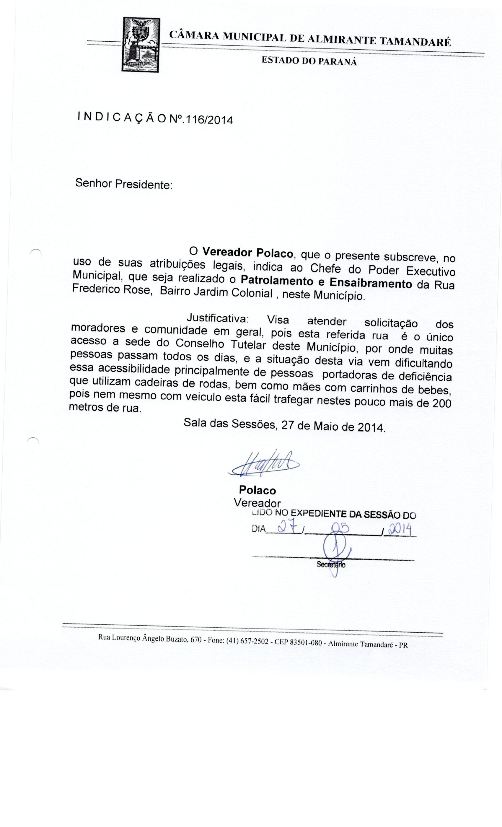 IND 116/2014 - Indicação