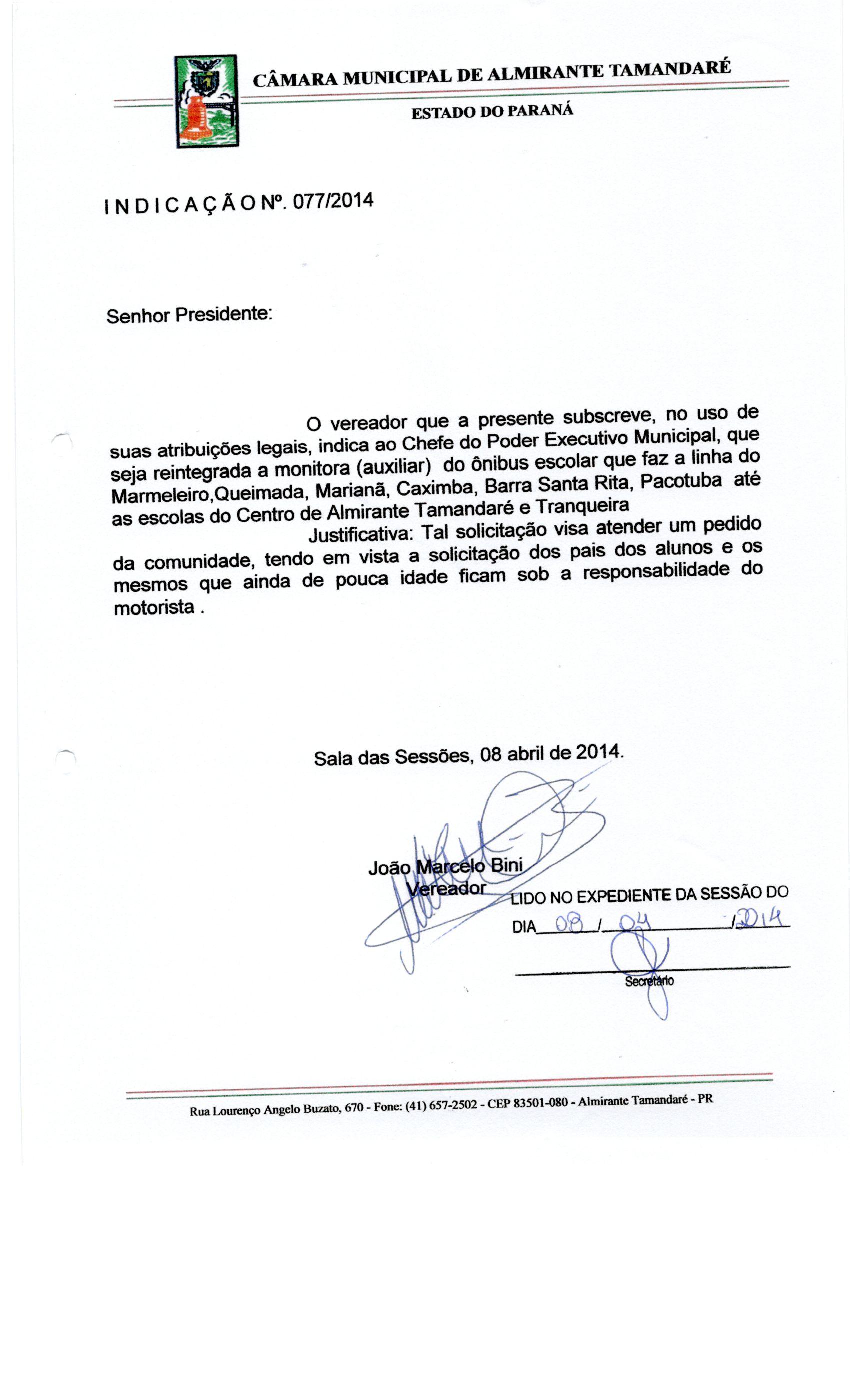 IND 77/2014 - Indicação
