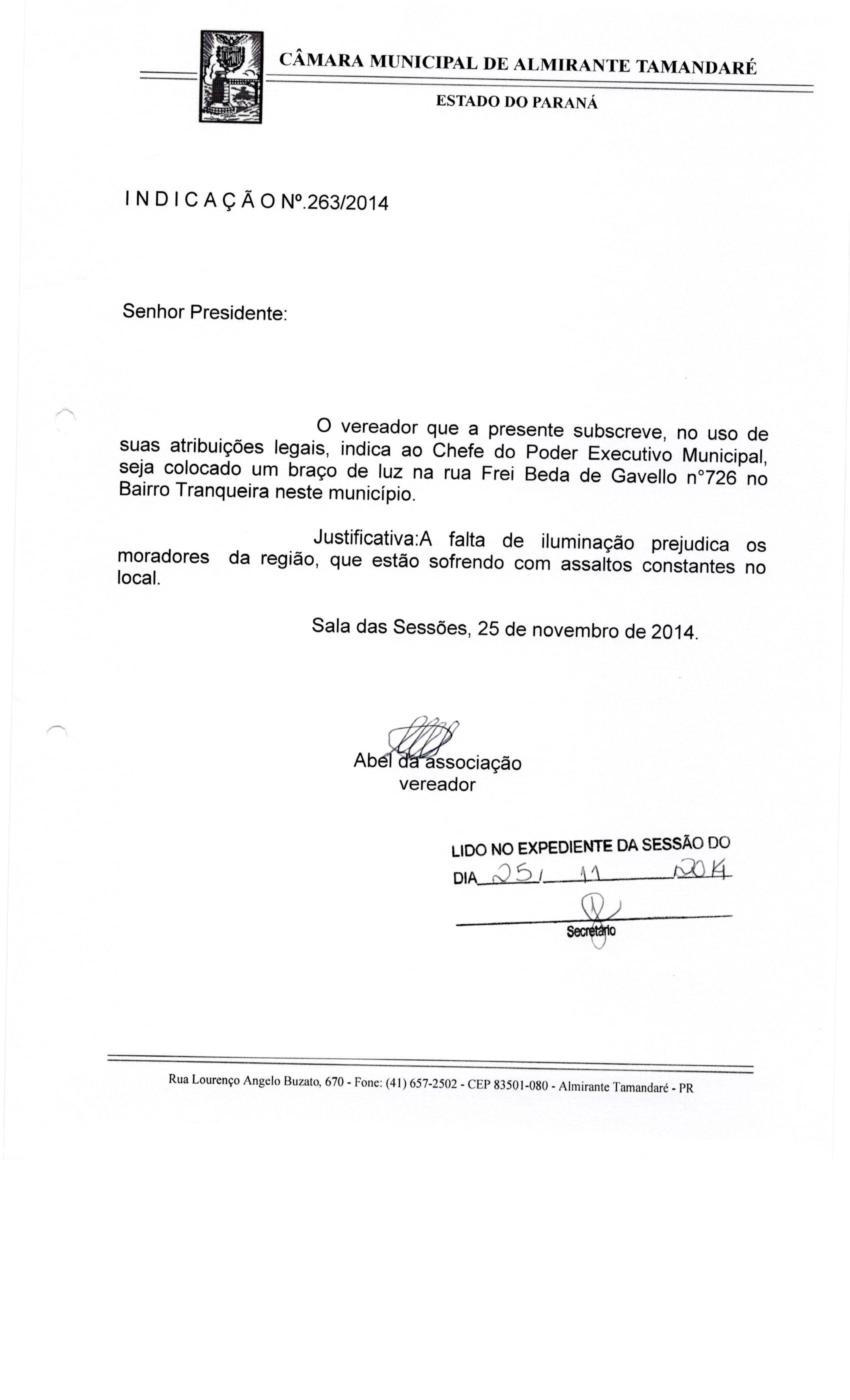 IND 263/2014 - Indicação