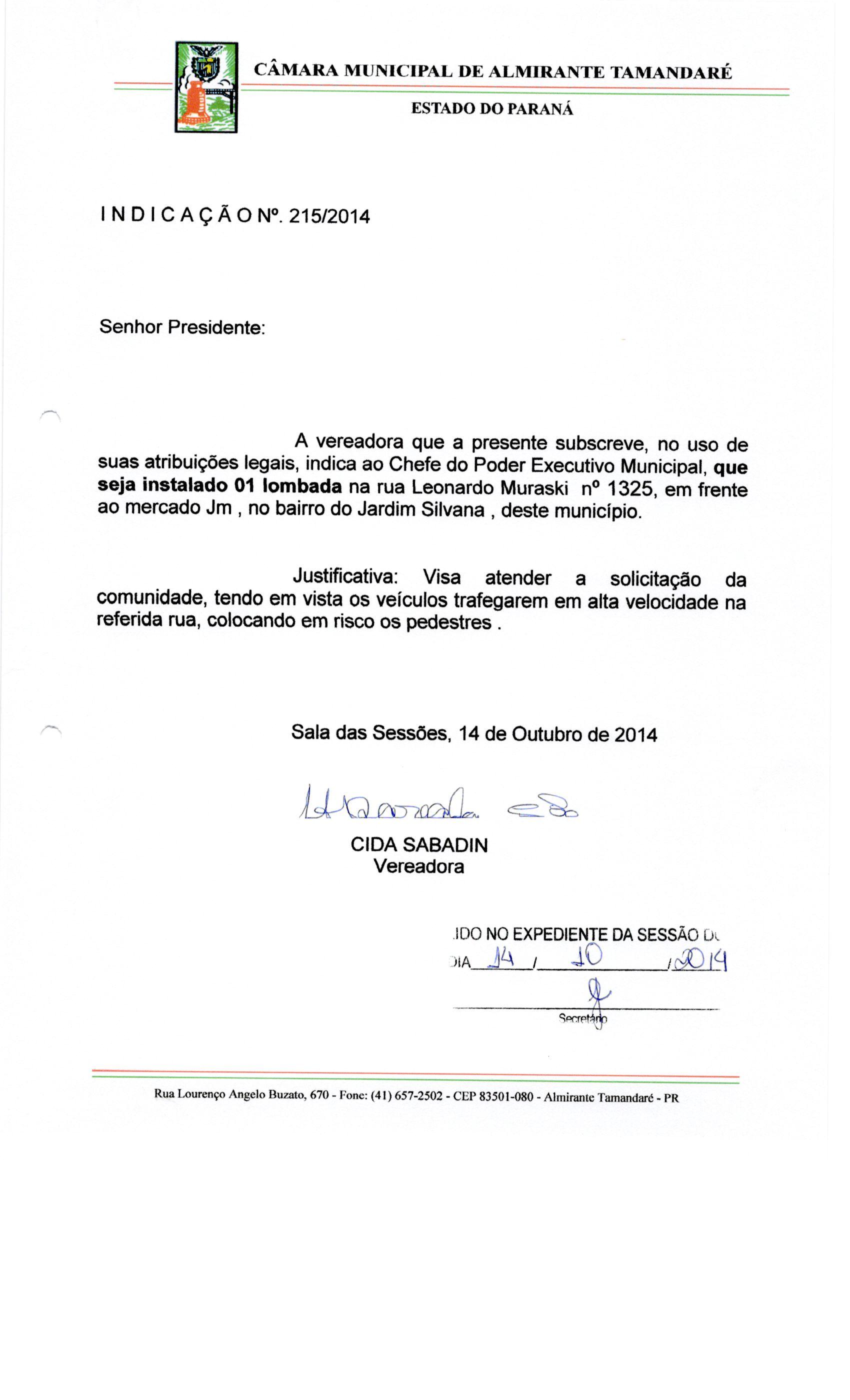 IND 215/2014 - Indicação