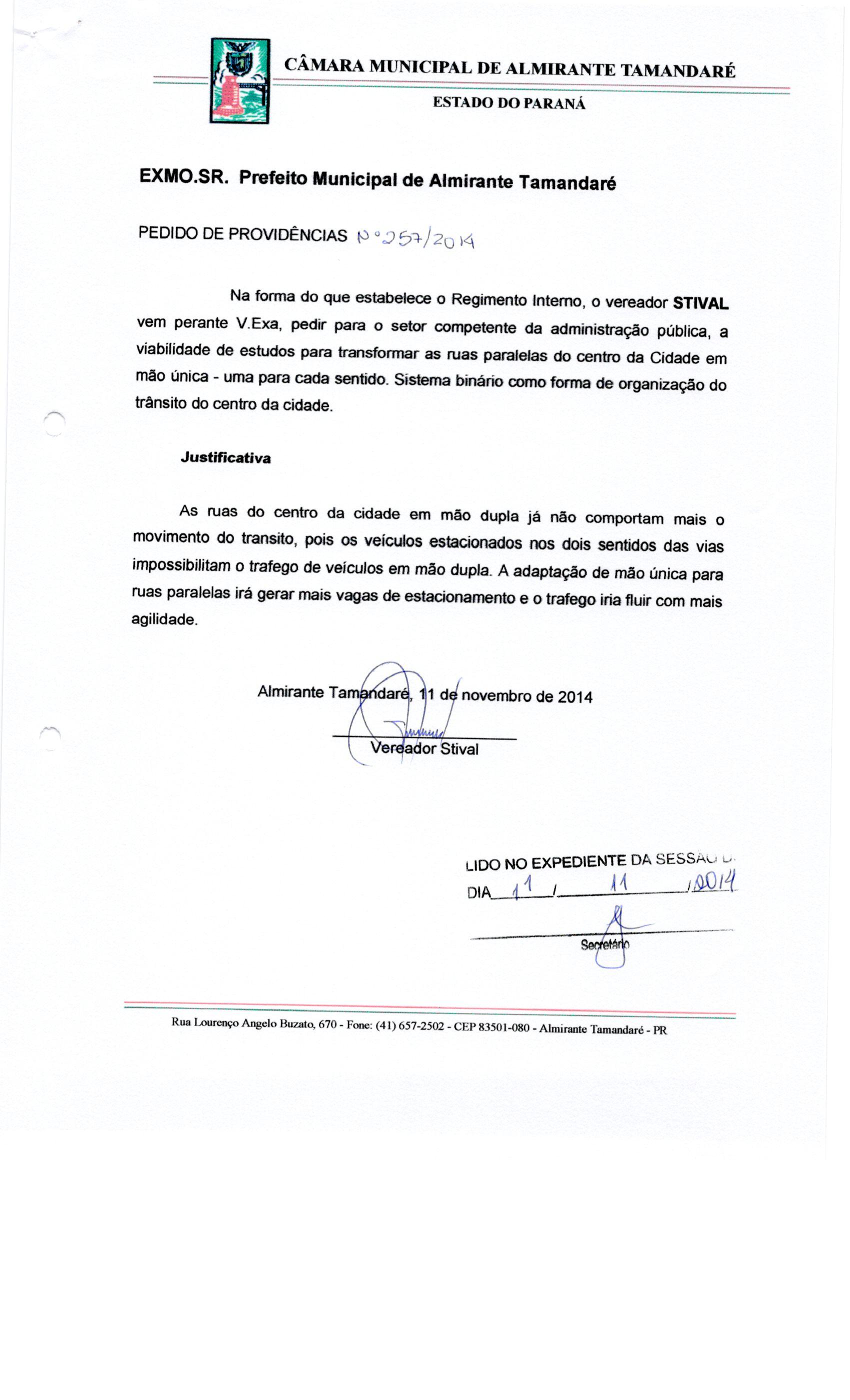 IND 257/2014 - Indicação