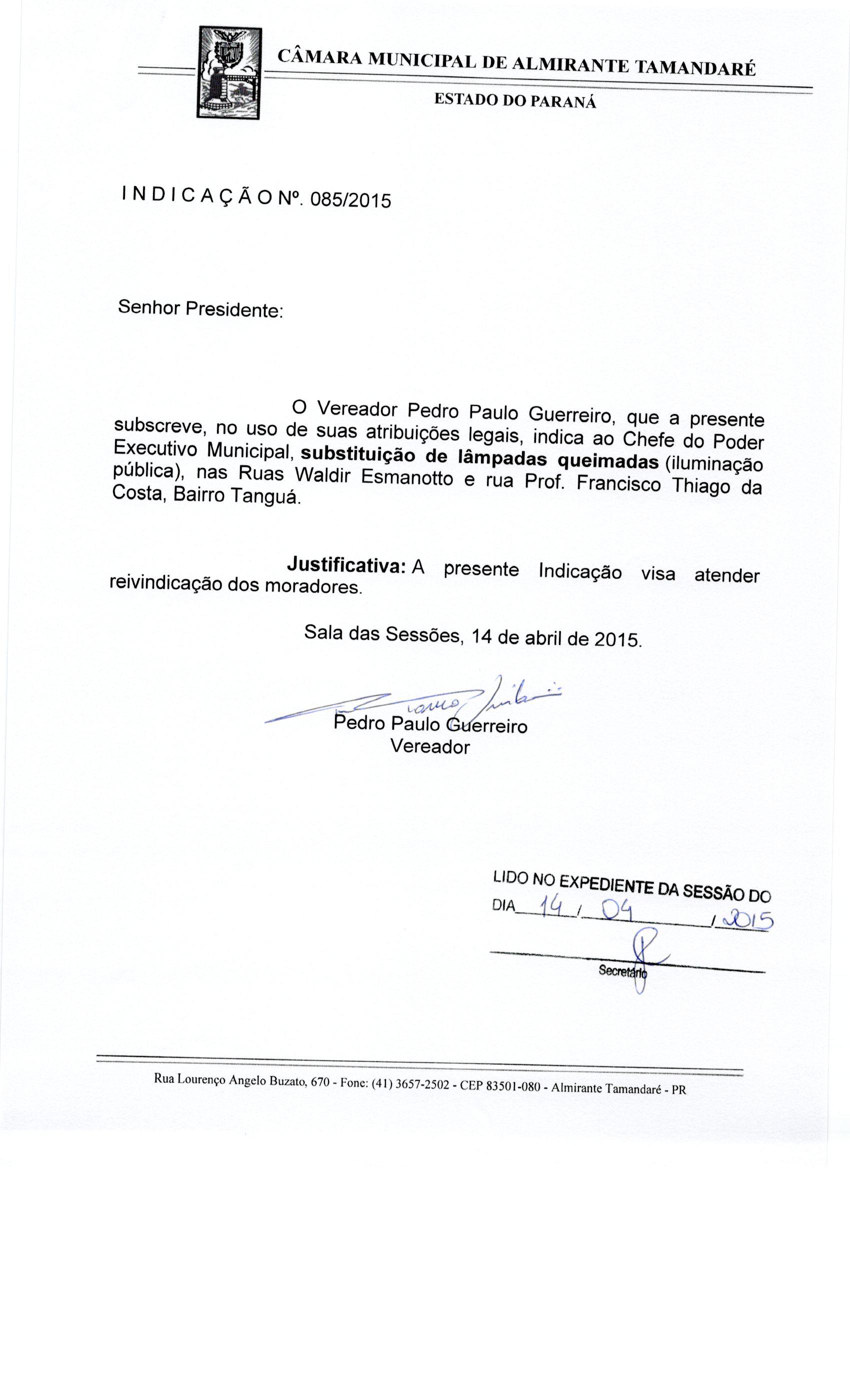 IND 85/2015 - Indicação