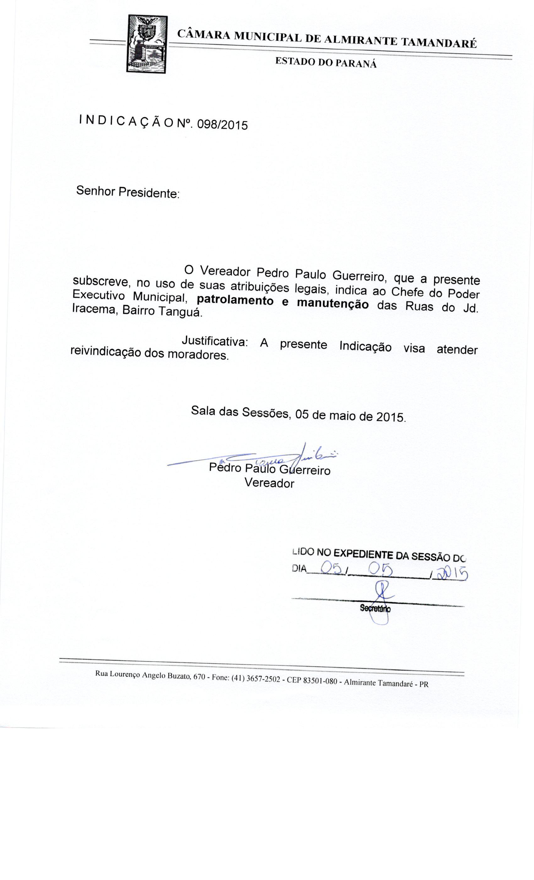 IND 98/2015 - Indicação