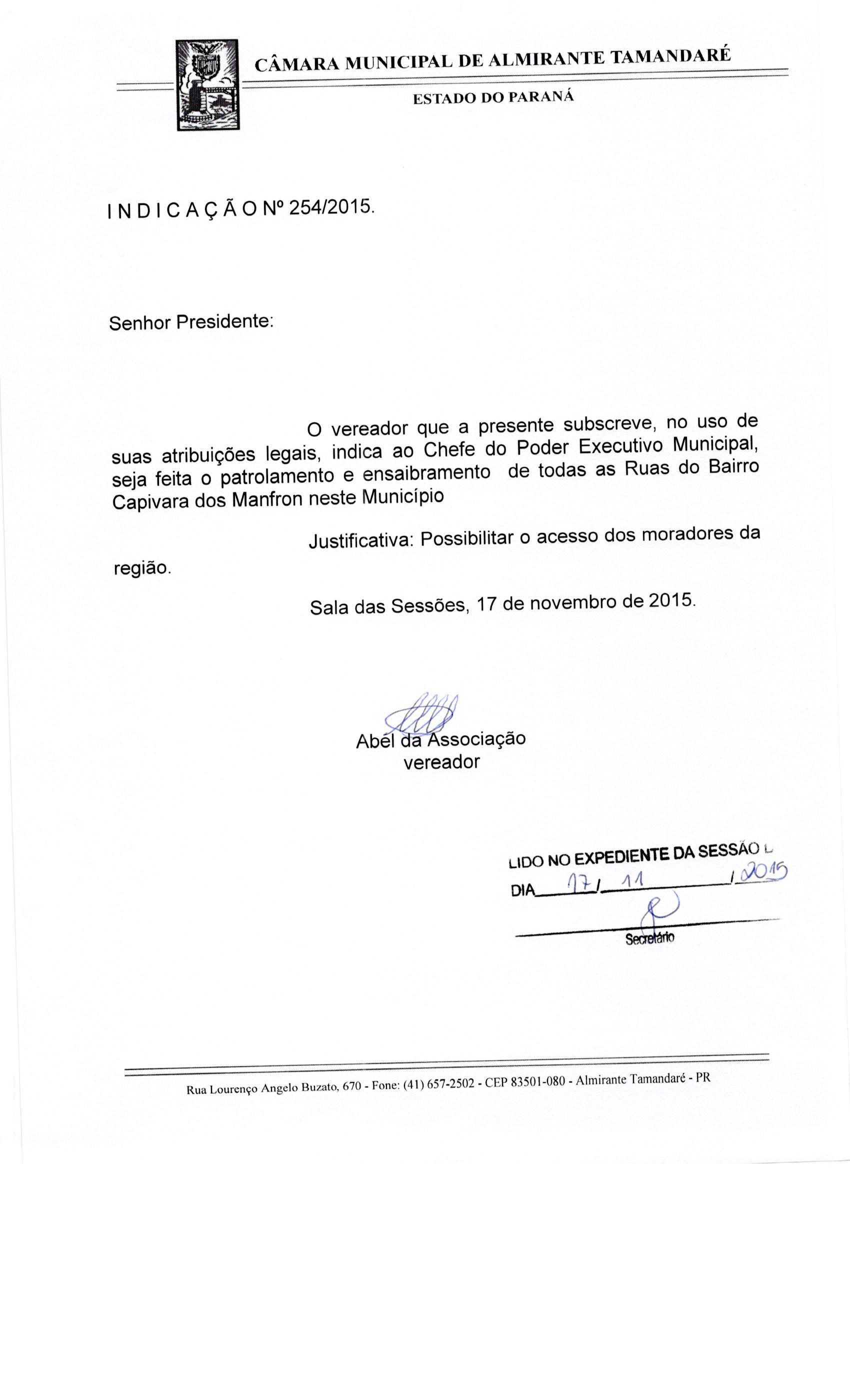 IND 254/2015 - Indicação