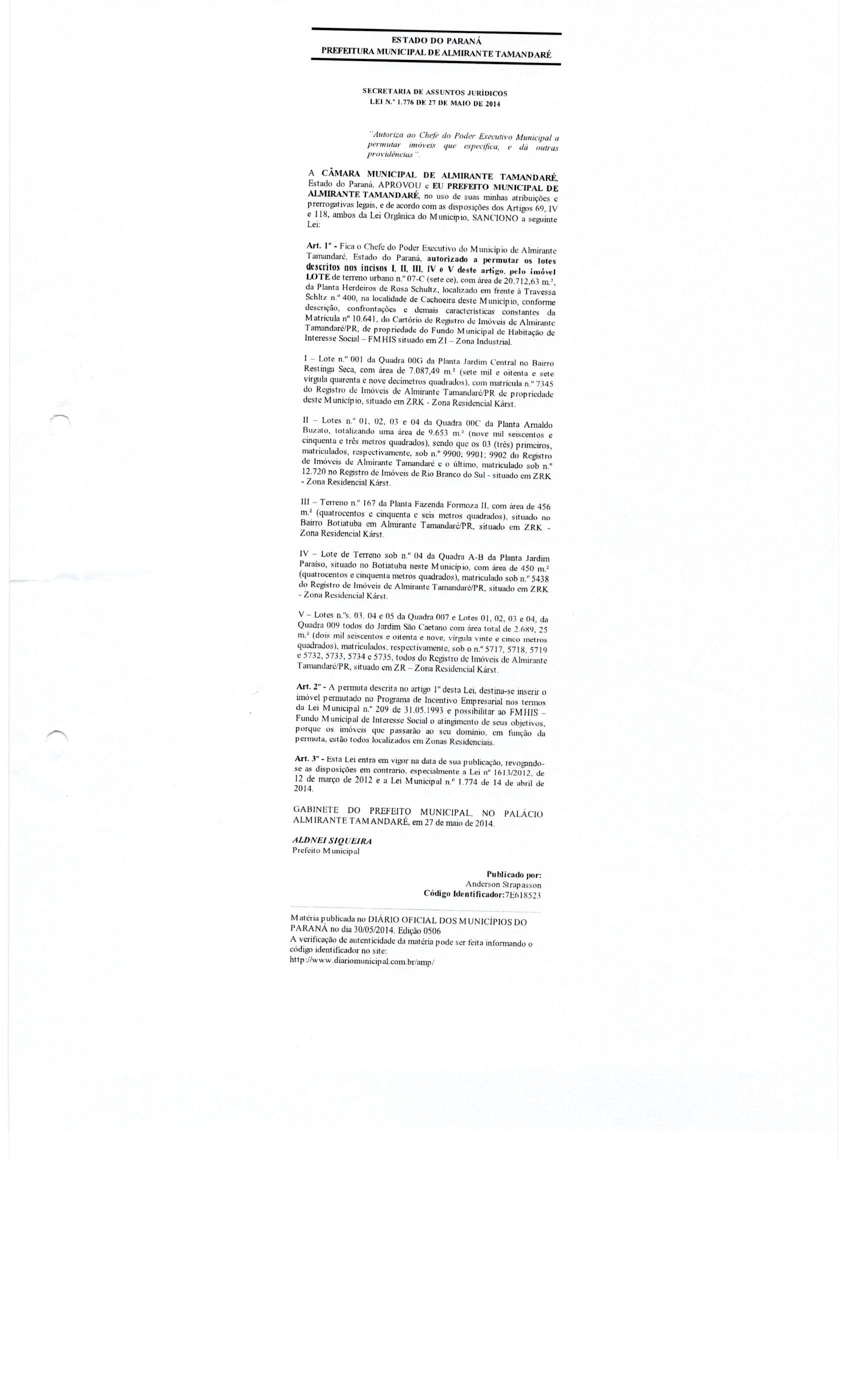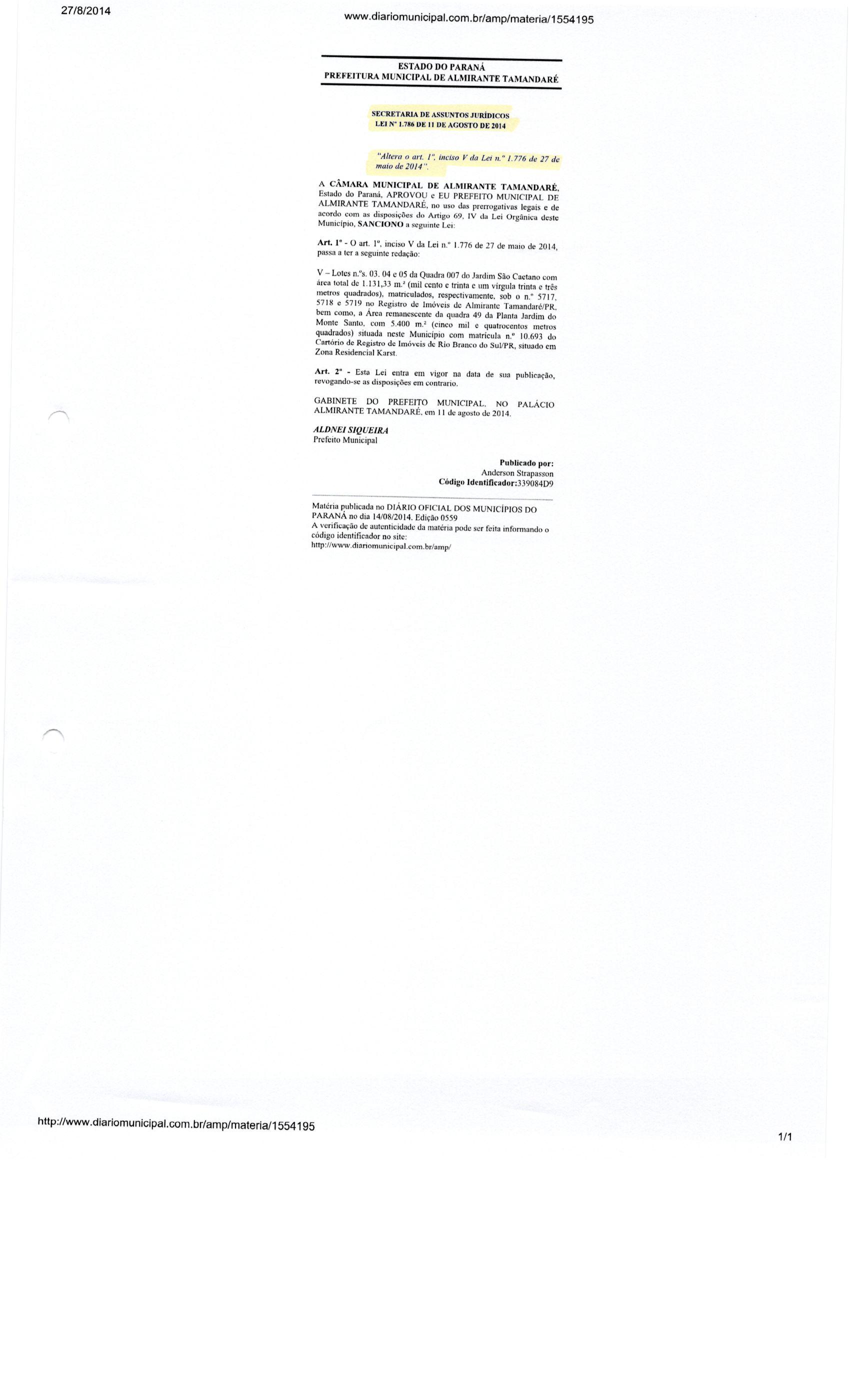 Ementa: ALTERA O ART. 1º, INCISO V DA LEI Nº1776 DE 27 DE MAIO D 2014 Texto Original |