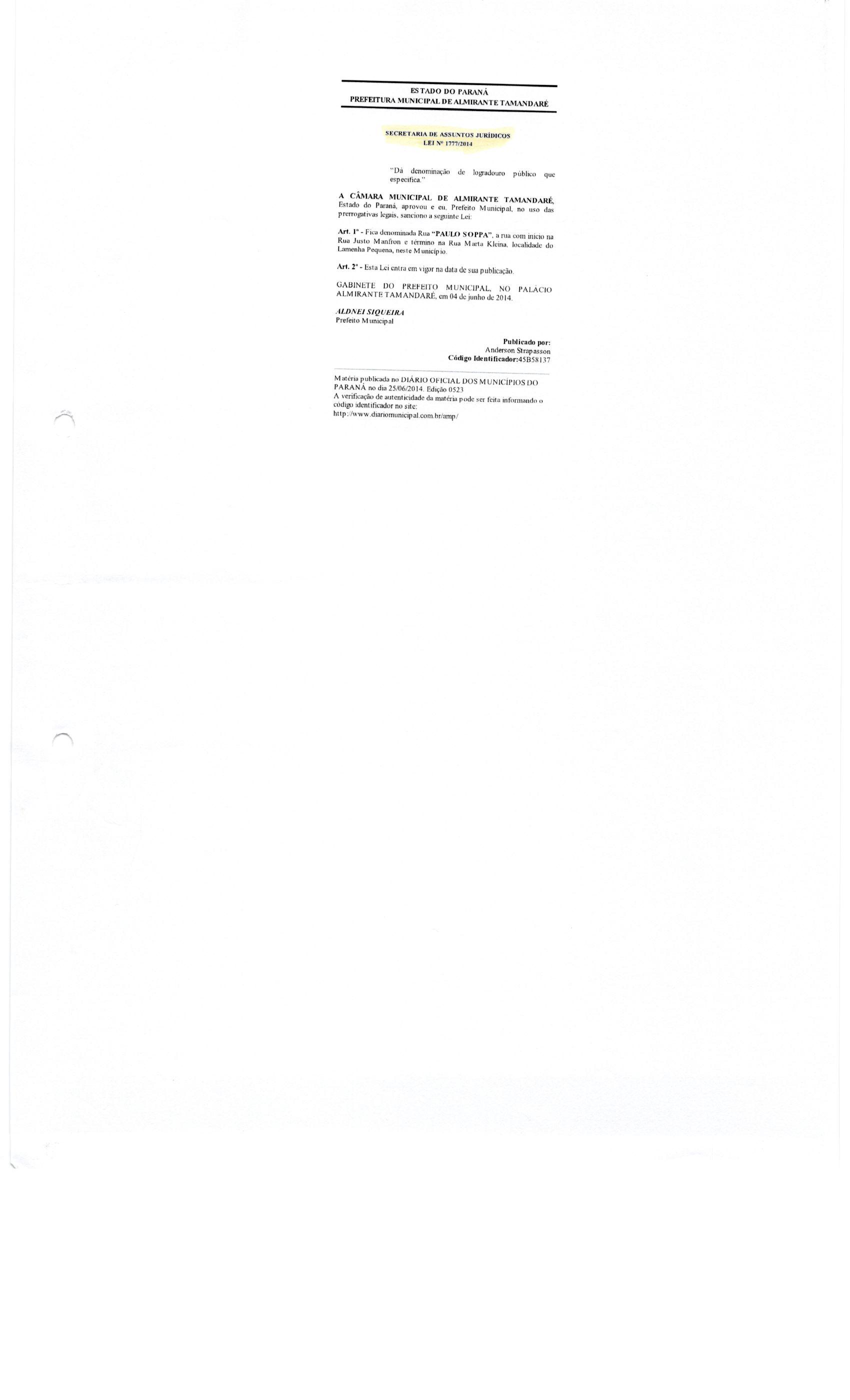 Ementa: "DÁ DENOMINAÇÃO DE LOGRADOURO PÚBLICO QUE ESPECIFICA" PAULO SOPPA Texto Original |